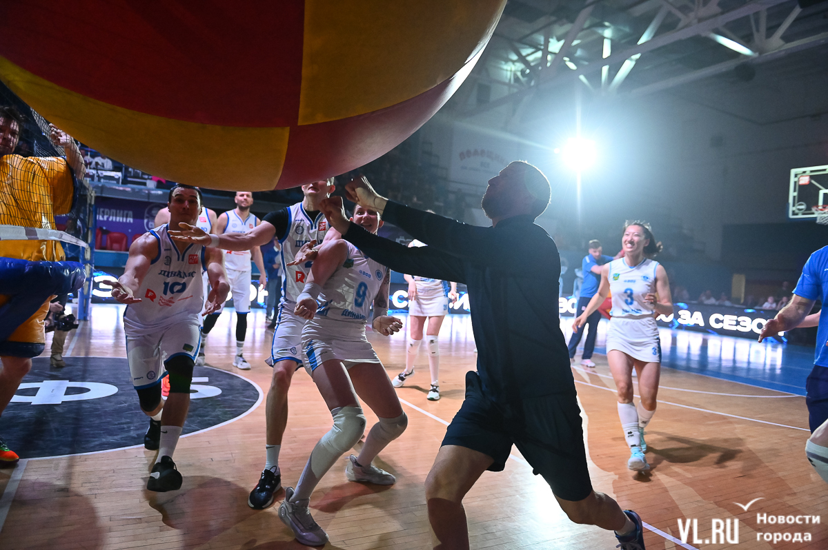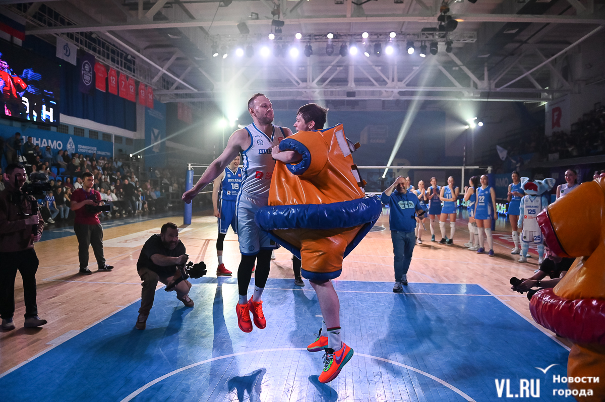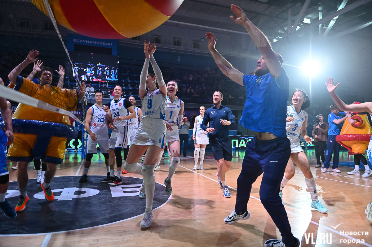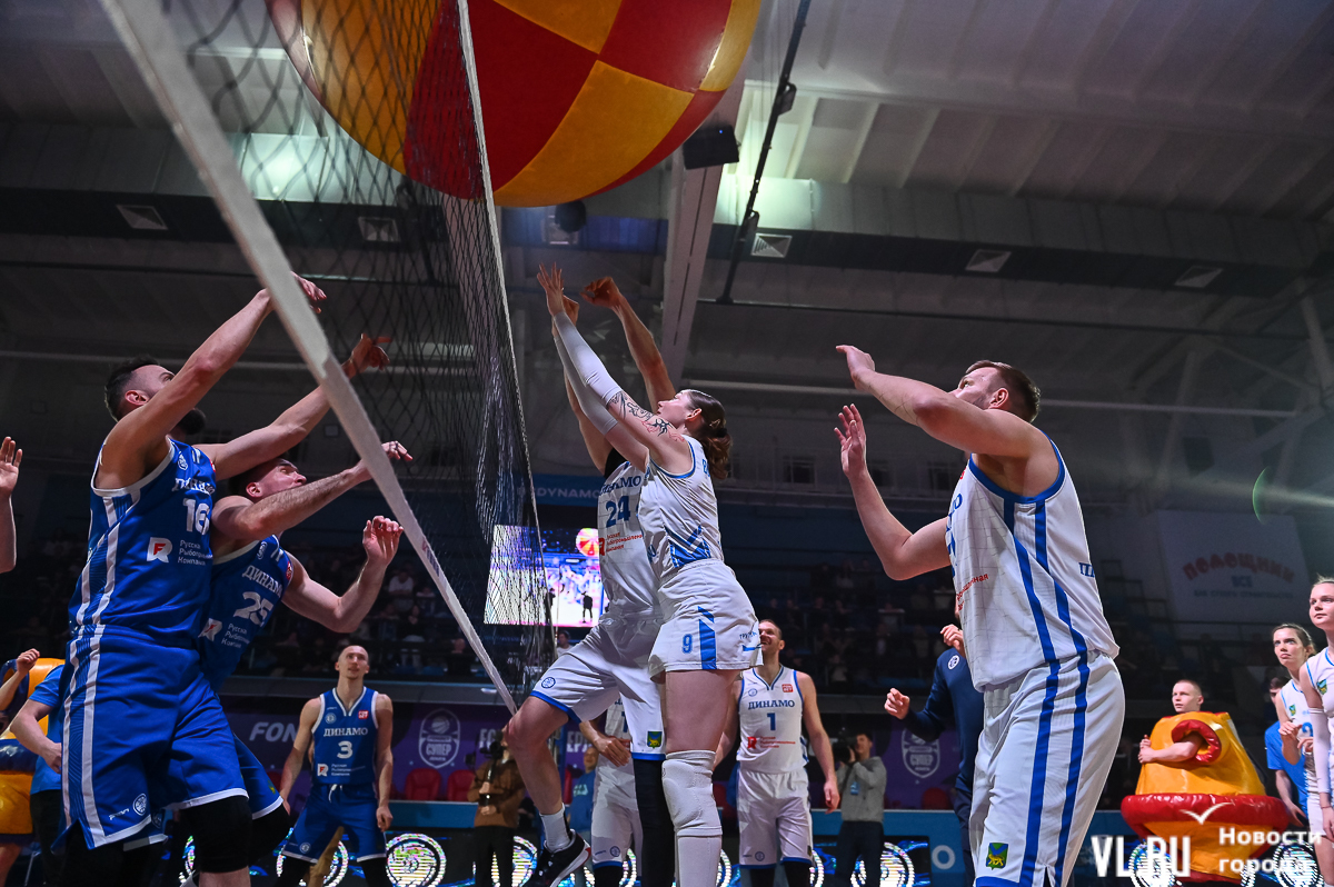 Во вторник, 29 апреля, на паркете СК «Олимпиец» во Владивостоке состоялось масштабное закрытие сезонов по волейболу и баскетболу. Впервые мужская баскетбольная и женская волейбольная команды приморского «Динамо» провели между собой гала-матч, подарив болельщикам настоящий праздник перед уходом на летние «каникулы». Помимо товарищеских мини-поединков, организаторы мероприятия для зрителей устроили массу активностей – от мгновенных фотографий с любимыми маскотами, волком «Динамиком» и леопардом «Диной» до розыгрышей абонементов на следующий баскетбольный сезон 2025/2026.