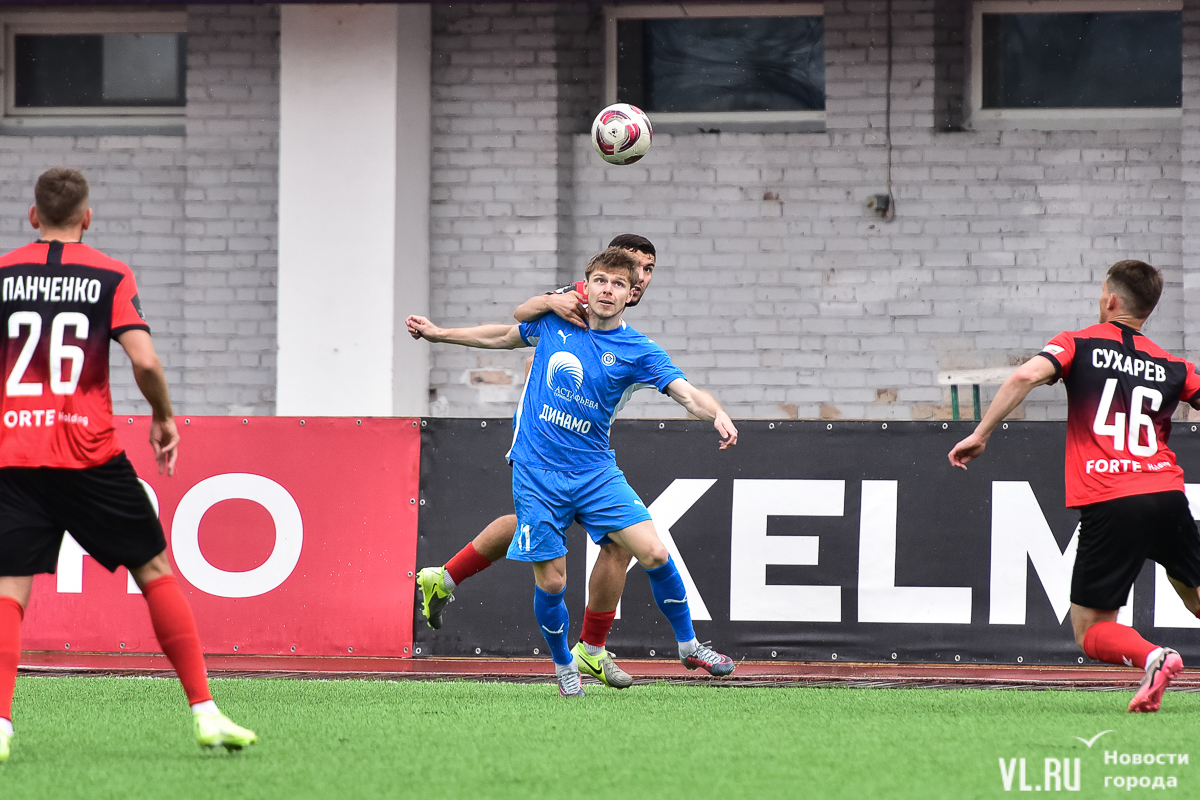Футбольный клуб «Динамо-Владивосток» в домашнем матче 11-го тура Второй лиги «А» уступил «Форте» из Таганрога. Матч на стадионе «Динамо» в приморской столице завершился со счётом 0:1 в пользу гостей. Единственный гол на 80-й минуте забил Максим Колмаков.