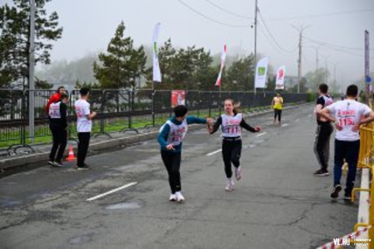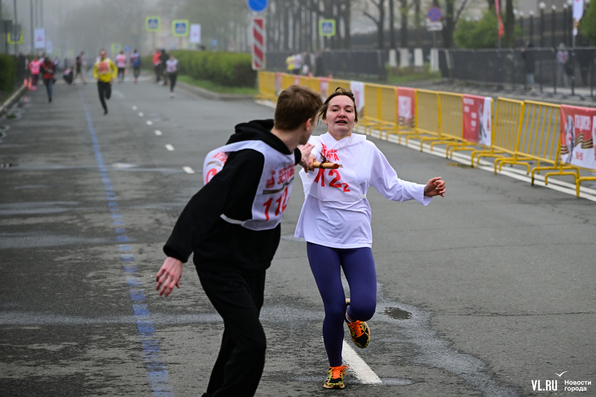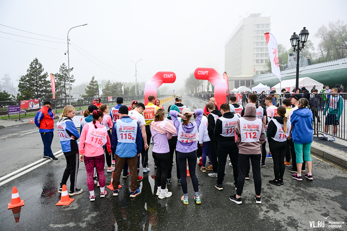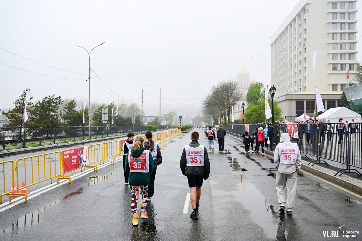 Затем на трассу вышли студенты, успевшие хорошо разогреться перед эстафетой, – на город спустился плотный туман, заметно похолодало, приходилось активно двигаться, чтобы не замёрзнуть. Очередное награждение – и студентов сменяют смешанные команды в возрастной категории – старше 18 лет.