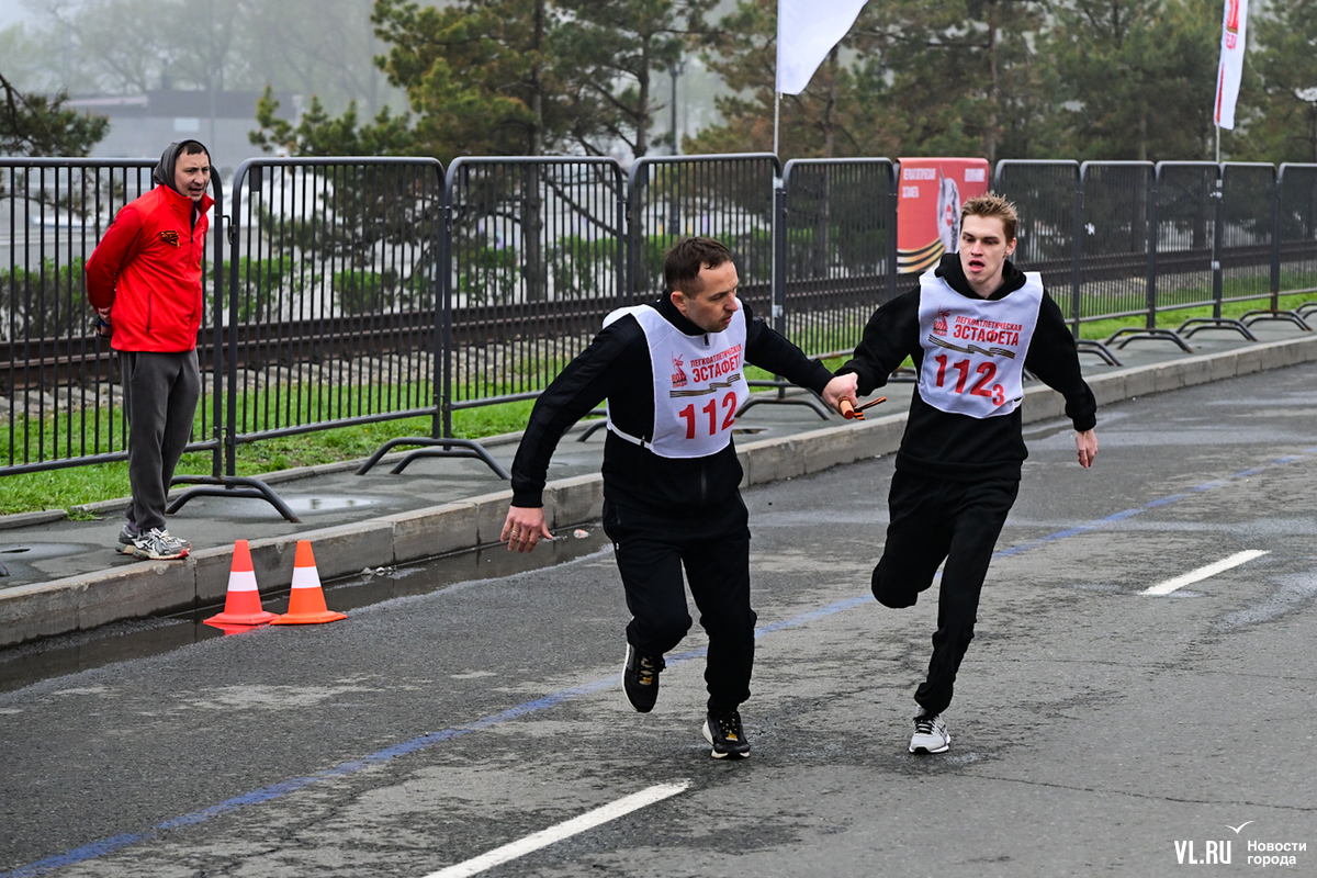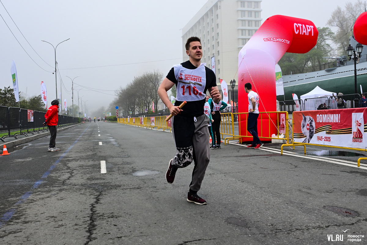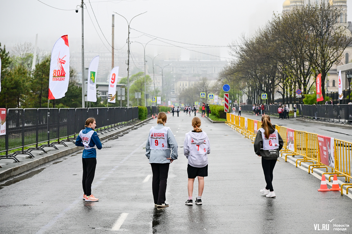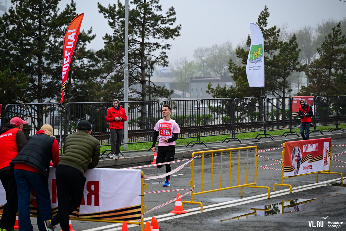Затем на трассу вышли студенты, успевшие хорошо разогреться перед эстафетой, – на город спустился плотный туман, заметно похолодало, приходилось активно двигаться, чтобы не замёрзнуть. Очередное награждение – и студентов сменяют смешанные команды в возрастной категории – старше 18 лет.