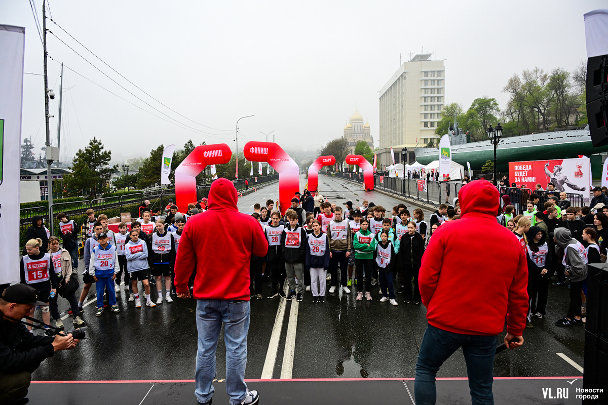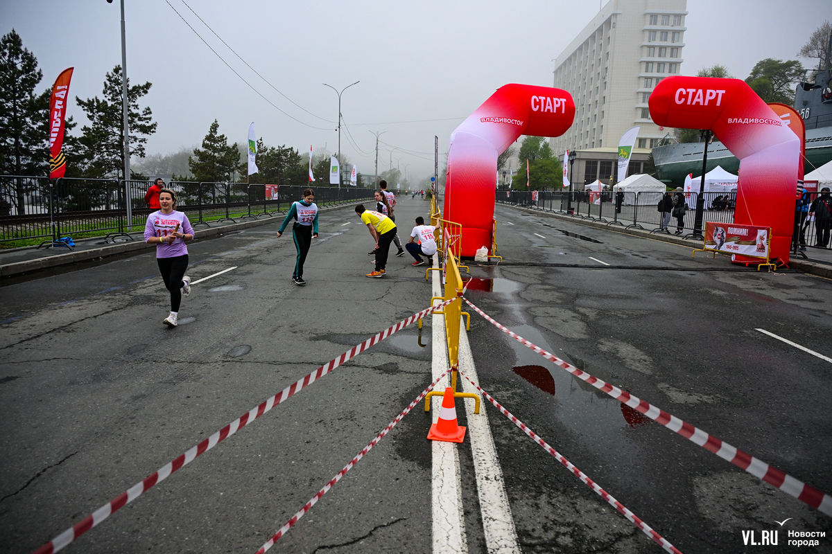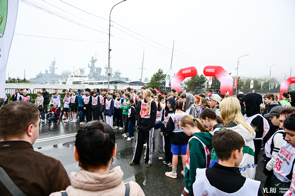 Уже около 10:30 автомобильная дорога Корабельной набережной больше походила на стадион – со всех сторон её огородили, в самом конце появились гигантские арки старта и финиша. У палатки, выполнявшей роль гардероба, было людно – толпы школьников разминались, бегали вприпрыжку и знакомились.