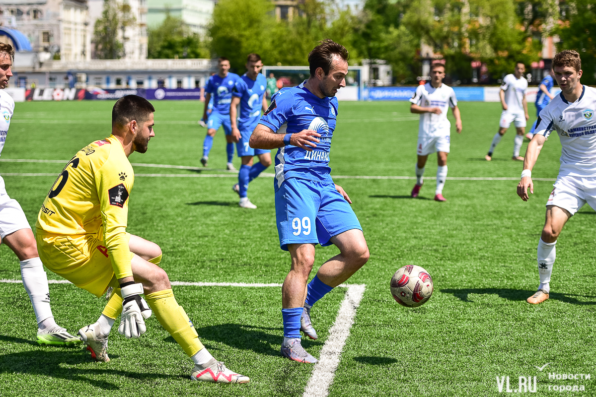 Абдула Багамаев вполне мог претендовать минимум на хет-трик в этой игре. В дебюте второго тайма он вылетел на рандеву с кипером – метился низом, но Ещенко успел выставить руку и отвёл угрозу. Позже полузащитник дважды пустил мяч мимо цели из убойных позиций, а также ассистировал на гол Алексею Баеву, который практически с линии ворот каким-то чудом отправил мяч в небеса. На 61-й минуте гости отквитали один гол благодаря рикошету после дальнего выстрела Князева, но на большее сил не хватило. «Динамо-Владивосток» смело держал оборону и завершил встречу победой со счётом 2:1.