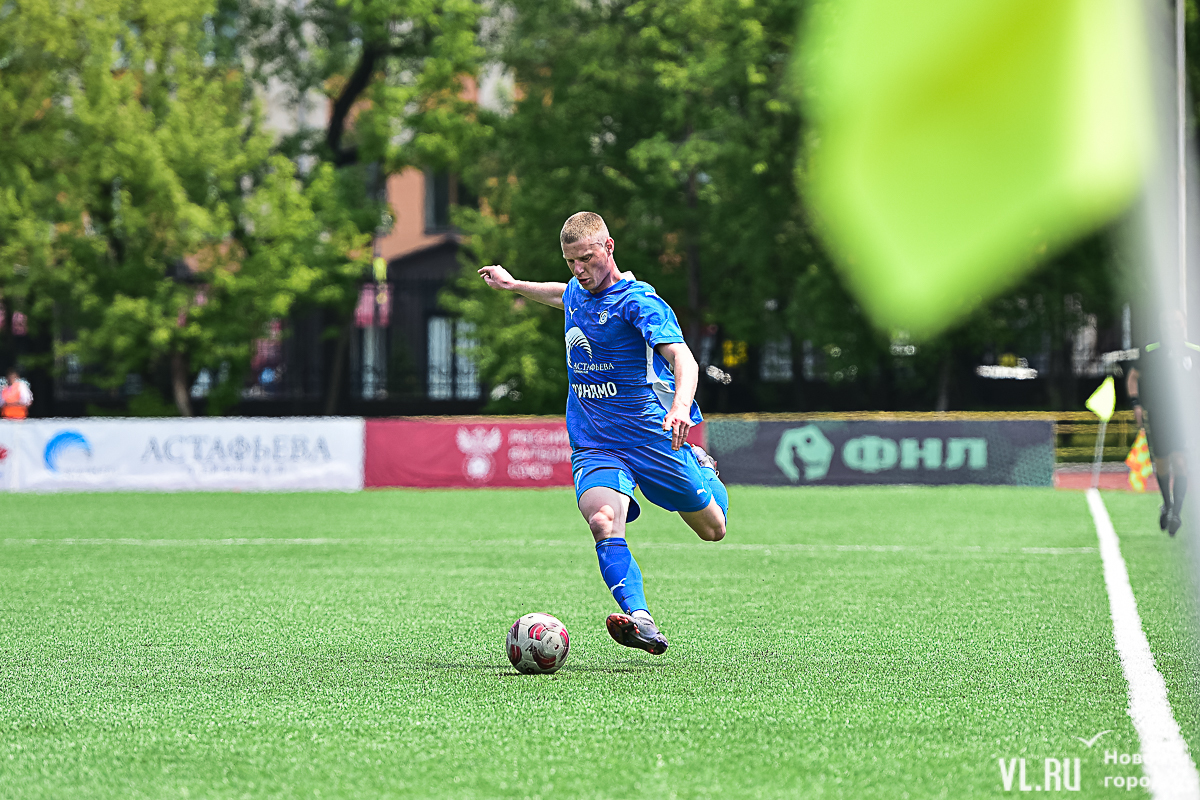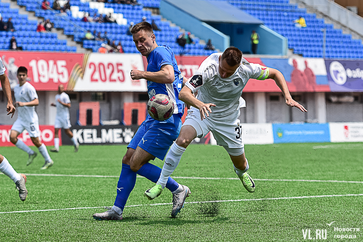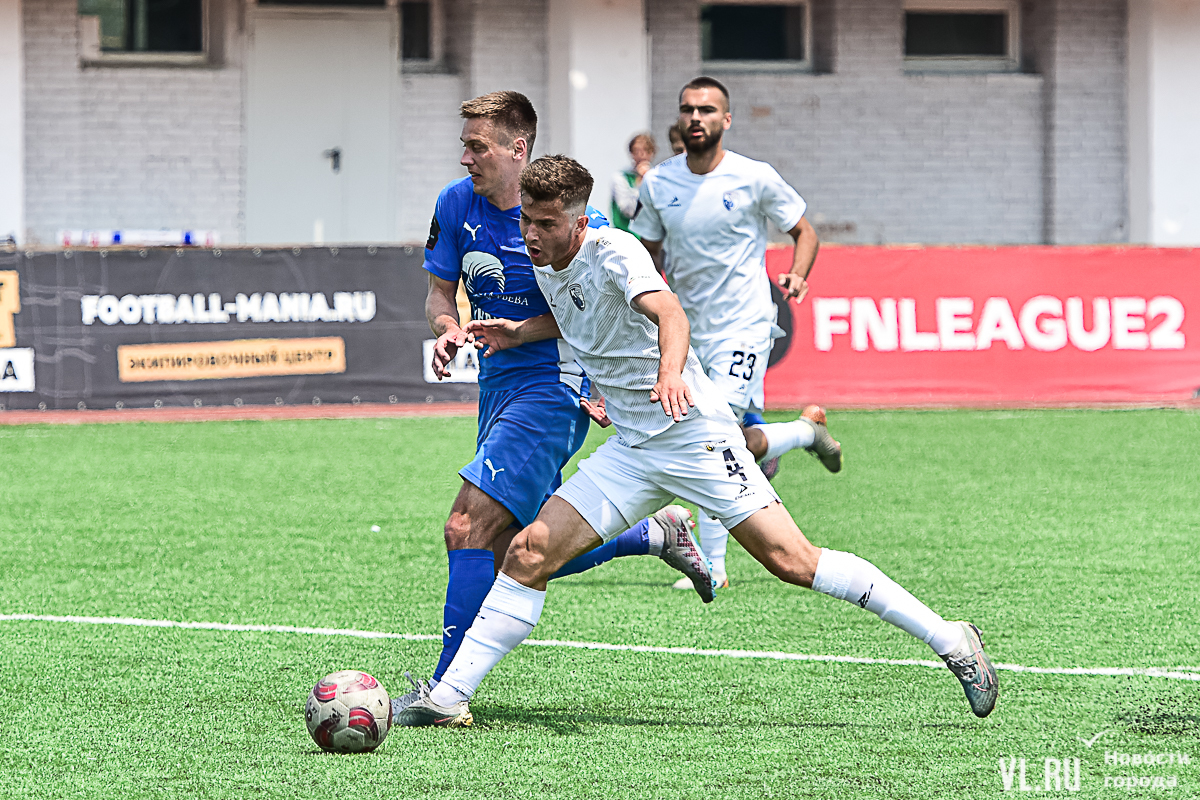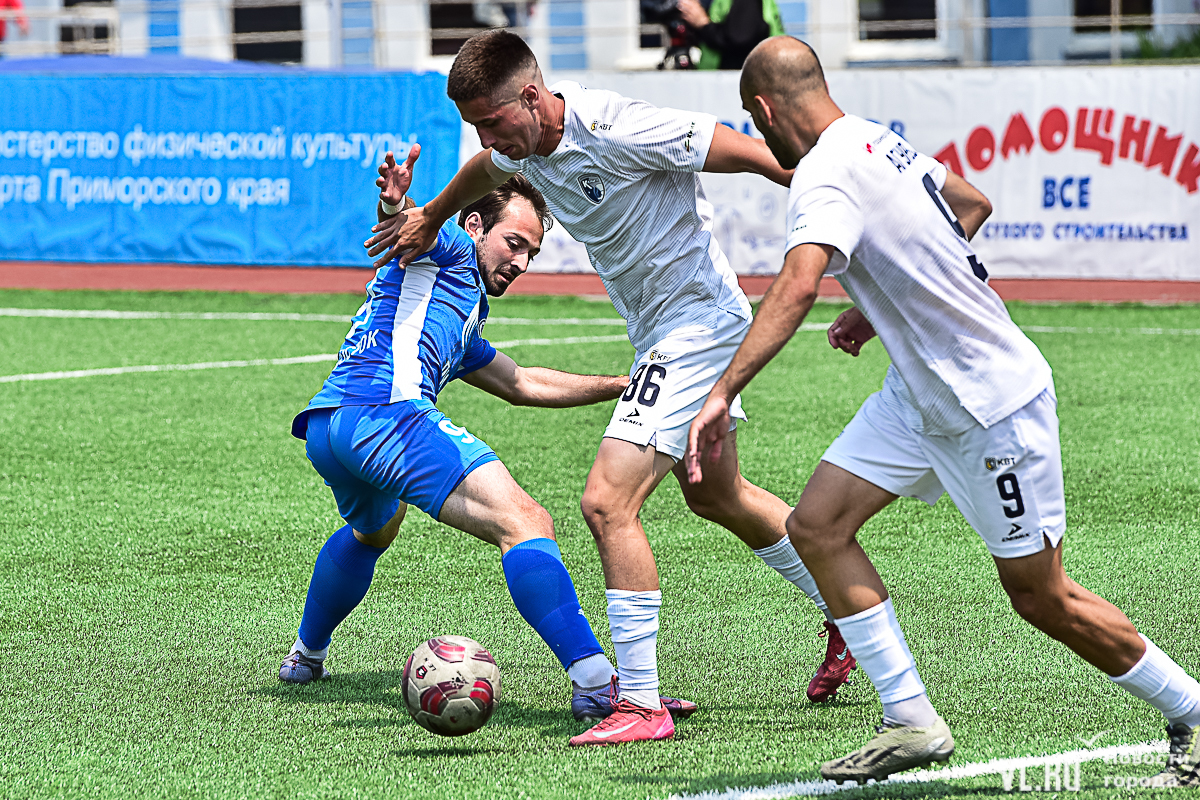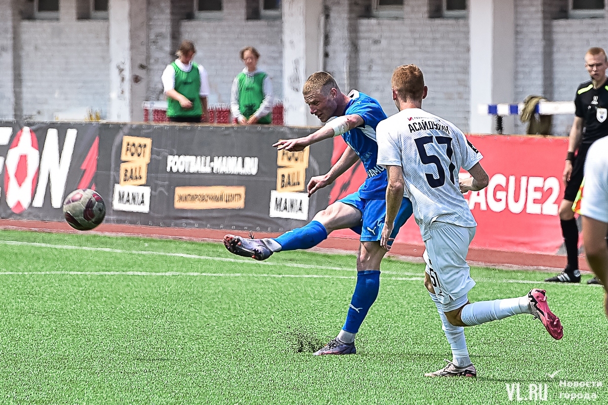 Владивостокское «Динамо» на старте матча больше владело мячом и было инициативнее – сразу заработало быстрый угловой, который, увы, дивидендов не принёс. Соперники играли вторым номером, но довольно уверенно защищались, раз за разом предотвращая опасность в штрафной после фланговых забросов «бело-голубых». Атаковали гости не чаще «динамовцев», но эффективнее, а на 32-й минуте добавили эмоций игре, забив первый гол. С правого фланга Ушаков отправил мяч во вратарскую, Шитов ошибся на выходе, а «снаряд» приземлился точно на голову лучшему бомбардиру «Серебра» Даниилу Агурееву, который не промахнулся в пустые ворота, – 0:1.
