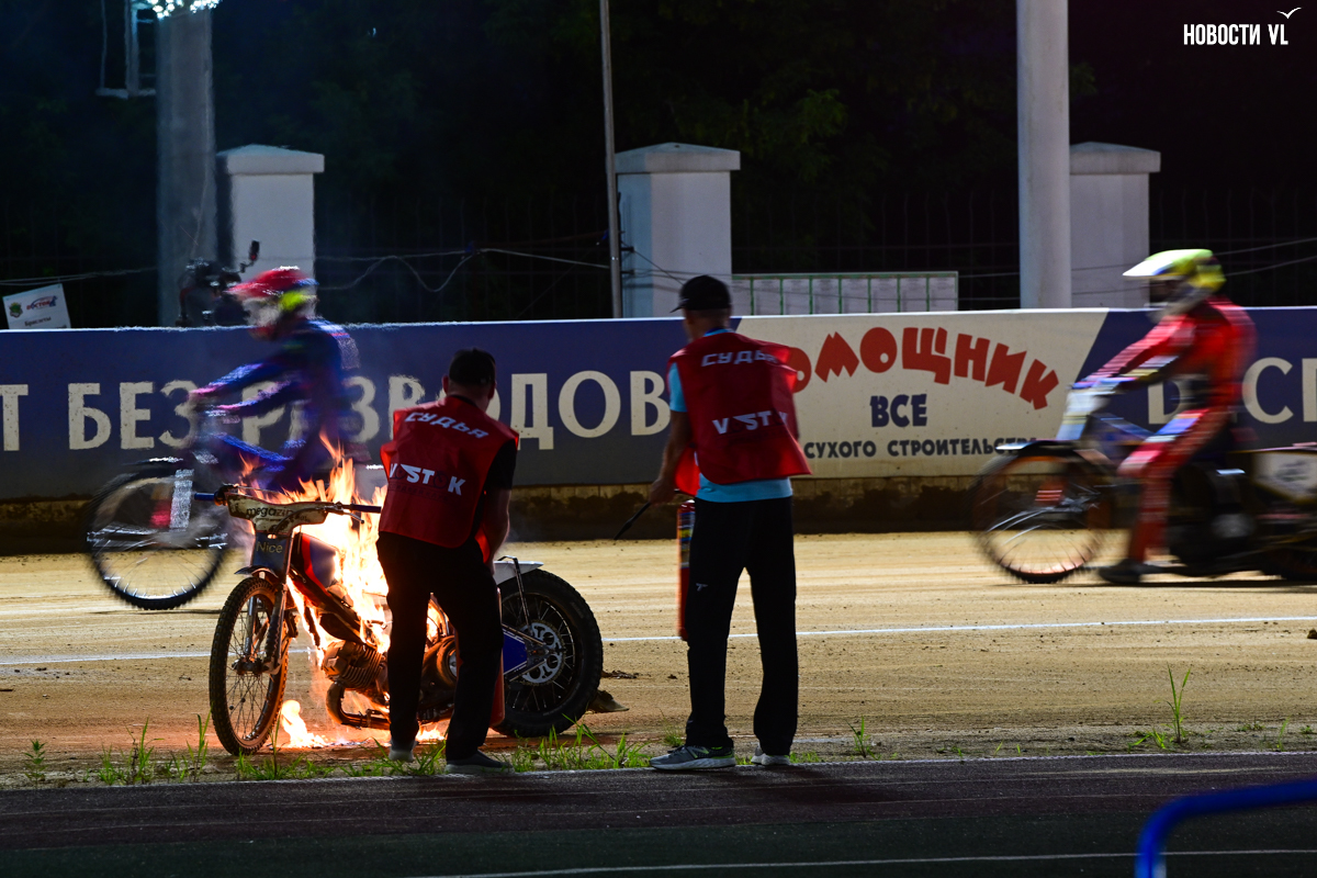 Во вторник, 29 июля, на стадионе «Авангард» во Владивостоке встретились местный «Восток» и «Турбина» из Балаково. Первая их встреча была неудачной для балаковцев, и в этот раз сценарий повторился. Спидвеисты из Владивостока выиграли со счётом 53:35 и уверенно шагнули навстречу первому месту и золоту чемпионата. Большая часть заездов были однотипными и завершались победой «Востока», однако третий запомнился своим долгим разбирательством судей и тренеров, а десятый – возгоранием мотоцикла у спортсмена из приморской команды.