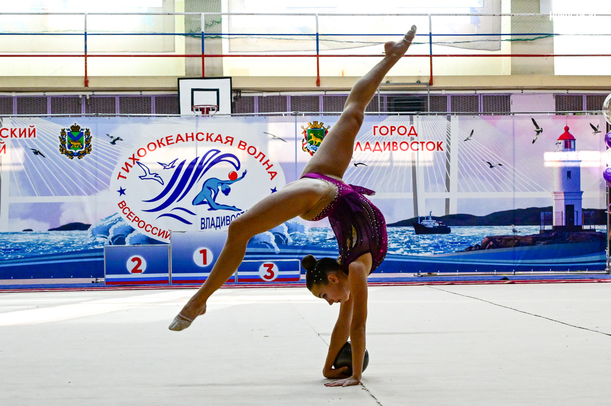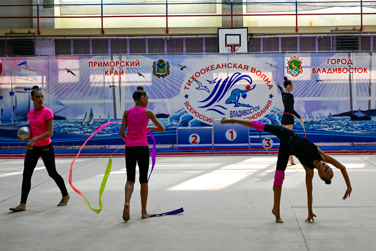 Всероссийские соревнования «Тихоокеанская волна» традиционно проходят в Приморье. В этом году во Владивосток приехали спортсменки из сборных разных уголков страны – от Москвы до Сахалина. В пятницу, 24 октября, был дан официальный старт, а также прошли групповые соревнования – гимнастки показали своё мастерство и уже получили медали. А все эти выходные в спорткомплексе «Восход» на улице Русской проходят индивидуальные выступления – сегодня, например, день обруча и мяча.