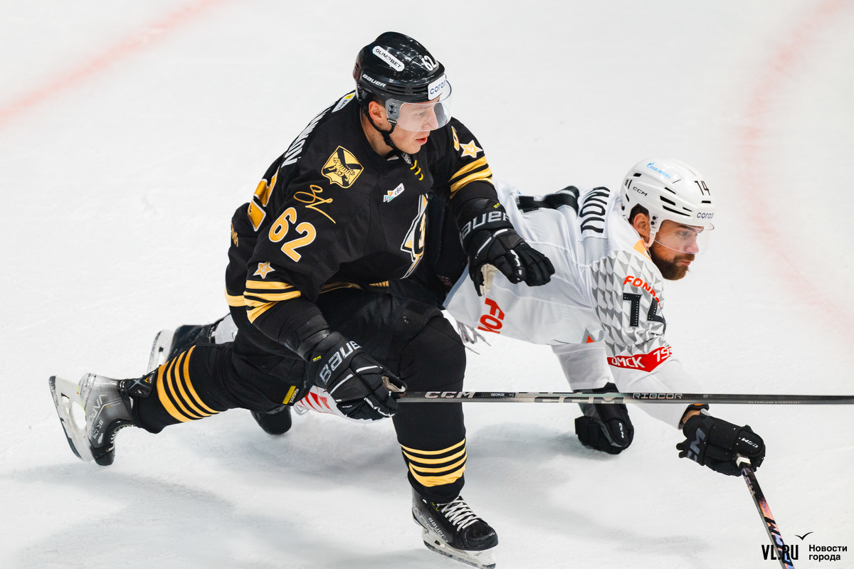 Первый период остался за «Адмиралом». Опасный бросок в дебюте нанёс Олсон – в скоростной атаке получил шайбу и бросил под ближнюю штангу, заставив поработать хорошо известного приморским поклонникам хоккея вратаря Никиту Серебрякова. Голкипер справлялся до поры до времени – на 11-й минуте капитулировал: «моряки» умчались в контратаку «два в одного», Гутик сделал выверенную подкидку через клюшку защитника, а Олсон броском в касание поразил омские владения – 1:0!