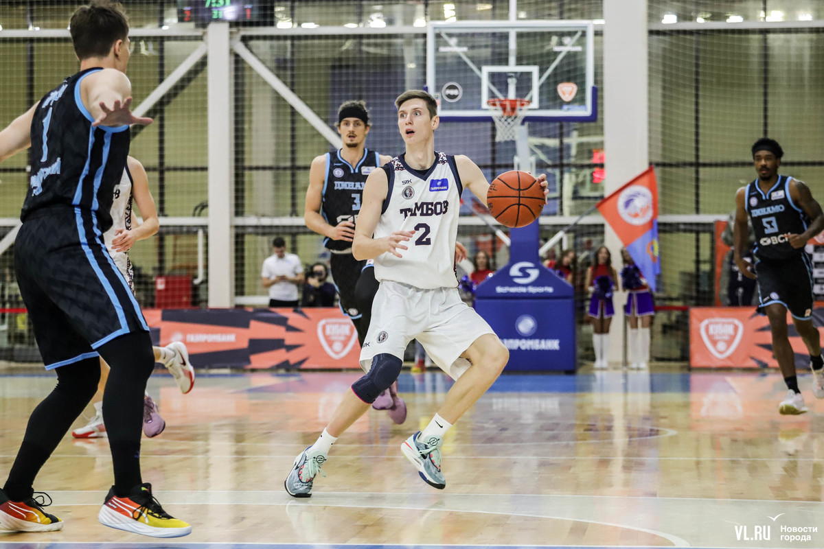 Матчем в Тамбове приморская команда дебютировала в новом розыгрыше Кубка России. На первый из двух поединков противостояния против «волков» в стартовом составе вышли молодое трио Ершов – Захаров – Умрихин, а также американский дуэт Кроули – Смит. Последний отличился на 15-й секунде, забросив издали, 3:0, однако при поддержке домашних трибун к экватору периода хозяева отобрали лидерство, – 14:11. На замену Захарову вышел Десятников, центровой отметился броском сверху, а инициативу приморцам вернул Ершов: реализовал штрафной и положил трёхочковый, следом ещё одну «трёшку» забросил Смит, – 18:14. «Тамбов» ушёл на тайм-аут, после него реабилитировался, но в концовке чашу весов в пользу «Динамо» склонили Умрихин и Захаров, – 23:21.