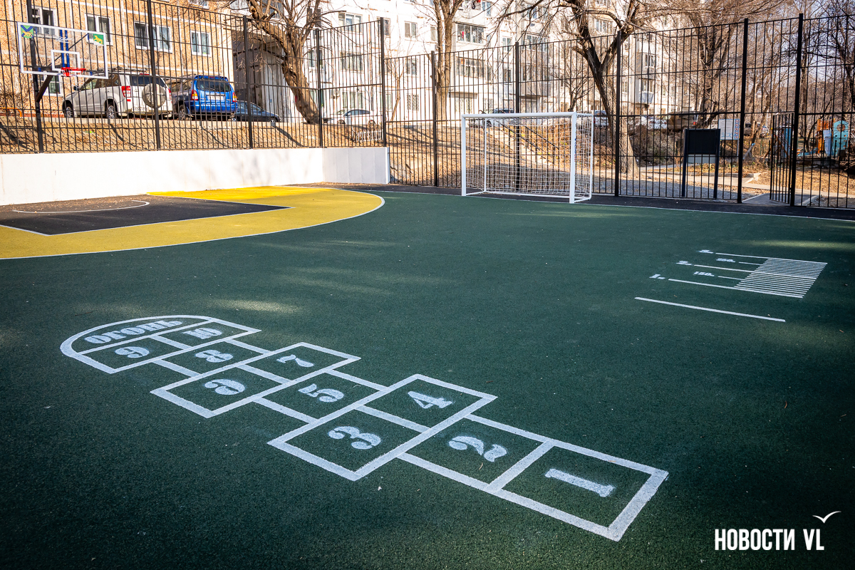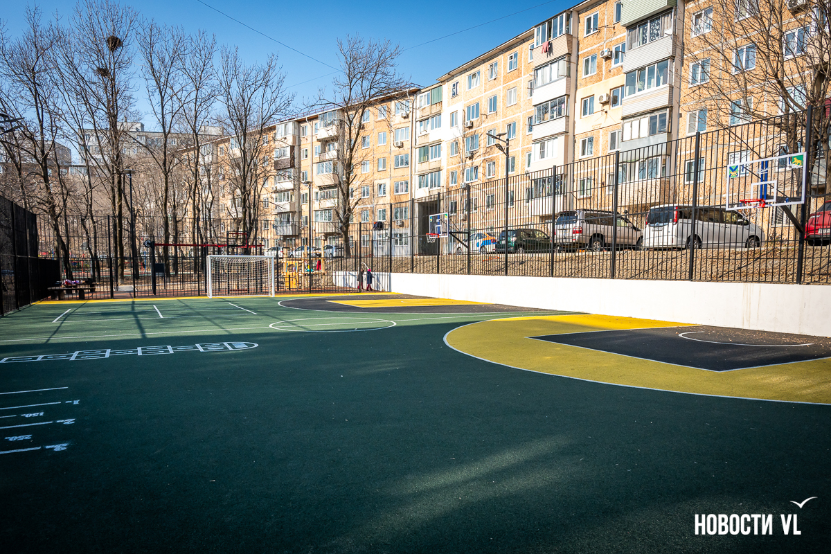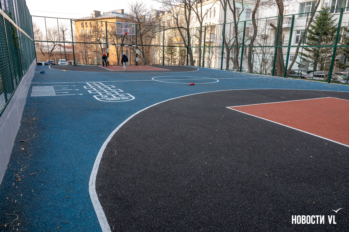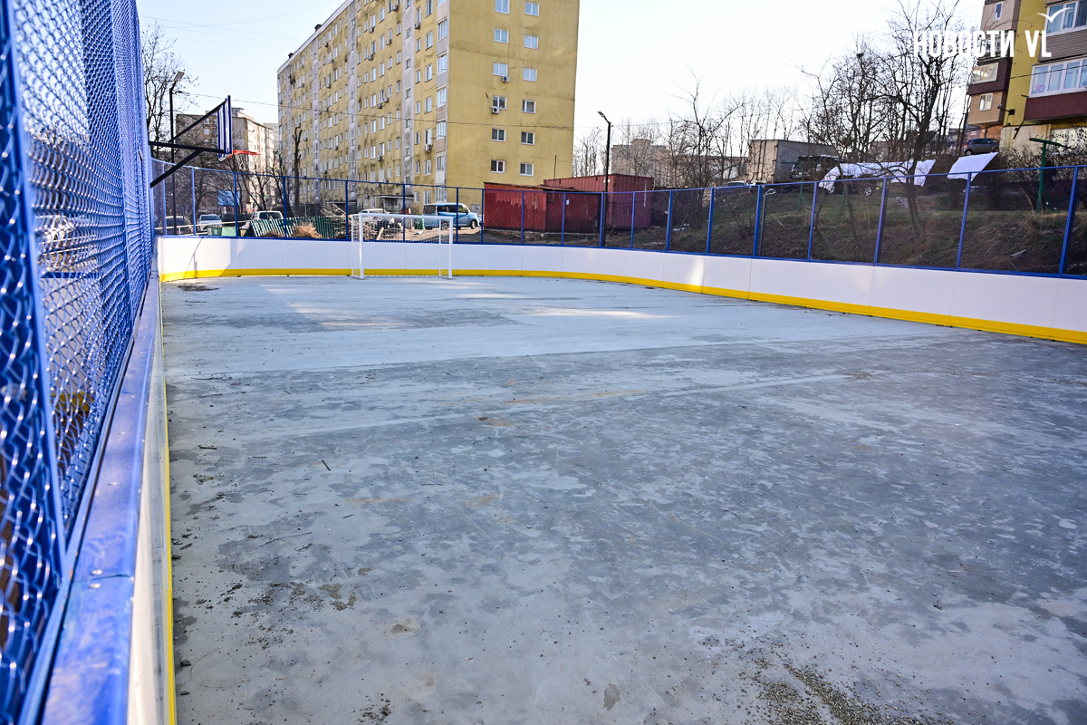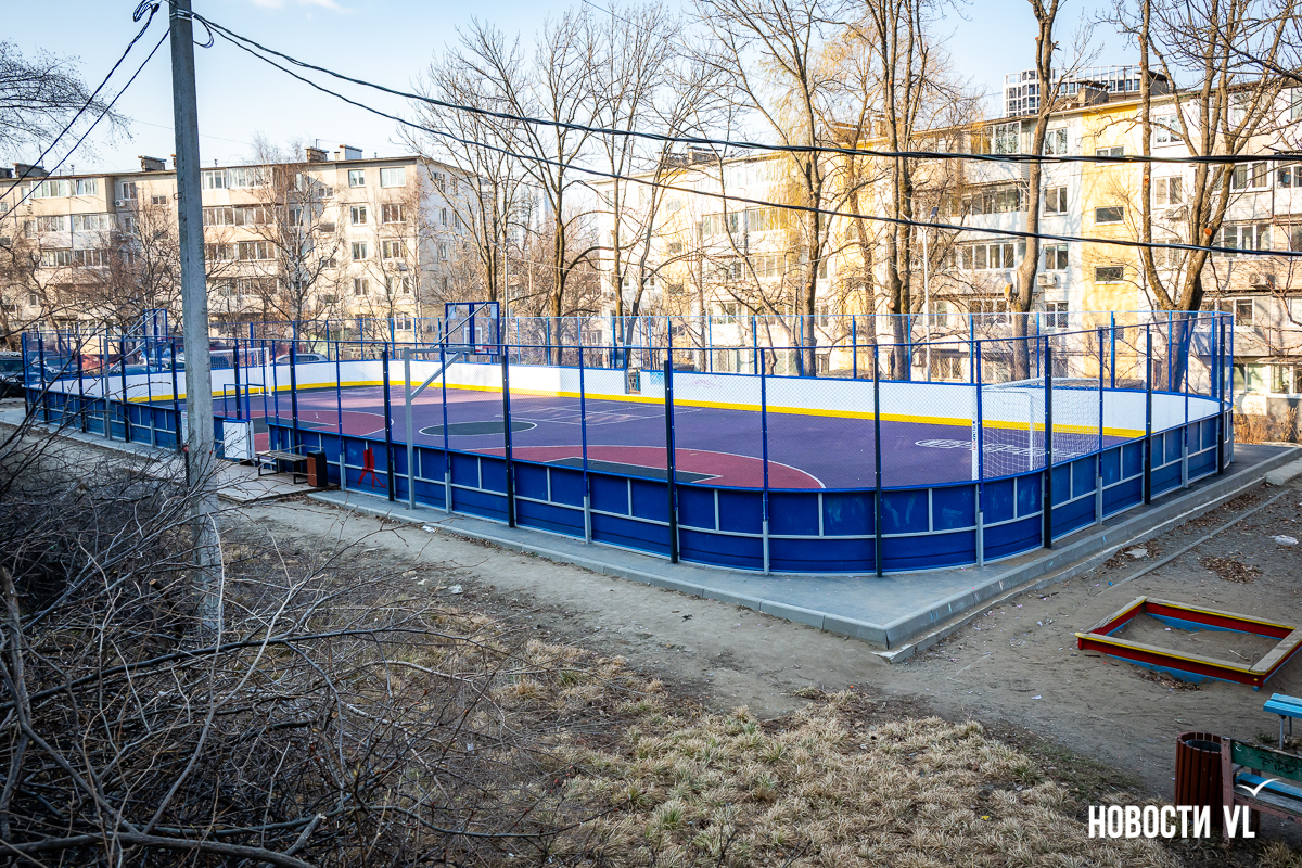 Самая маленькая площадка находится на Сипягина, 22 – 350 кв. м, 7,29 млн рублей. Здесь две стритбольные площадки с резиновым покрытием и имитацией ворот в ограждении. Раньше тут была единственная на Эгершельде муниципальная хоккейная коробка, поэтому и здесь будут заливать каток.