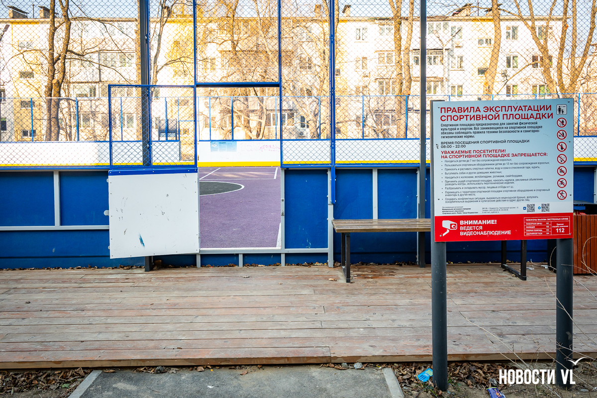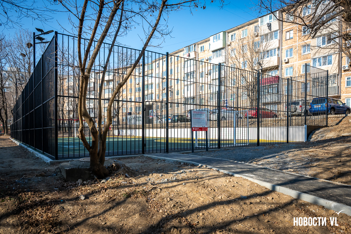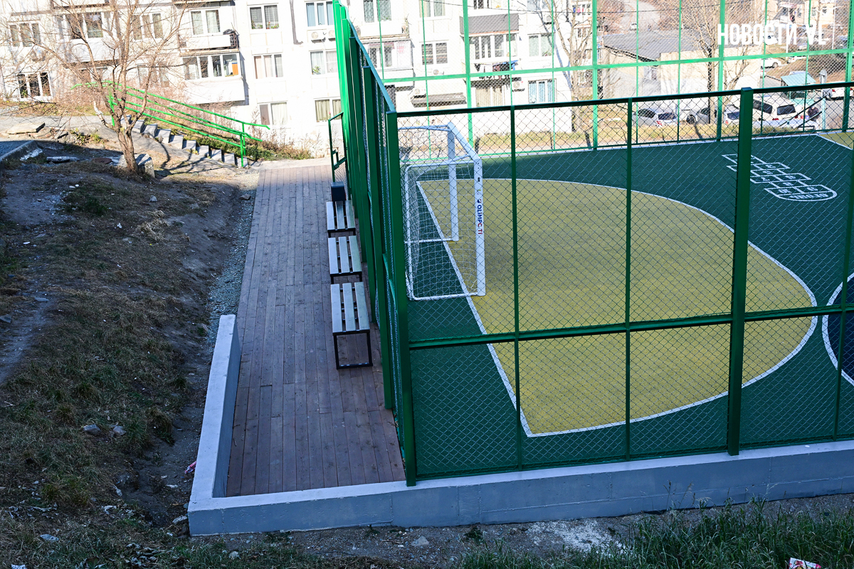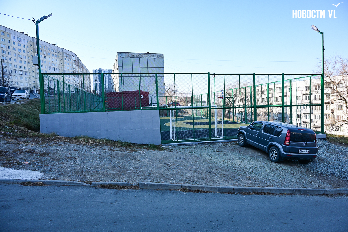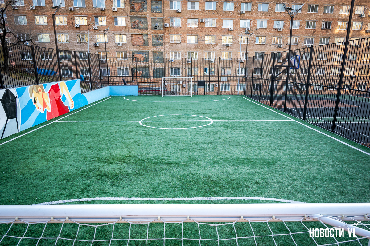 Самая маленькая площадка находится на Сипягина, 22 – 350 кв. м, 7,29 млн рублей. Здесь две стритбольные площадки с резиновым покрытием и имитацией ворот в ограждении. Раньше тут была единственная на Эгершельде муниципальная хоккейная коробка, поэтому и здесь будут заливать каток.