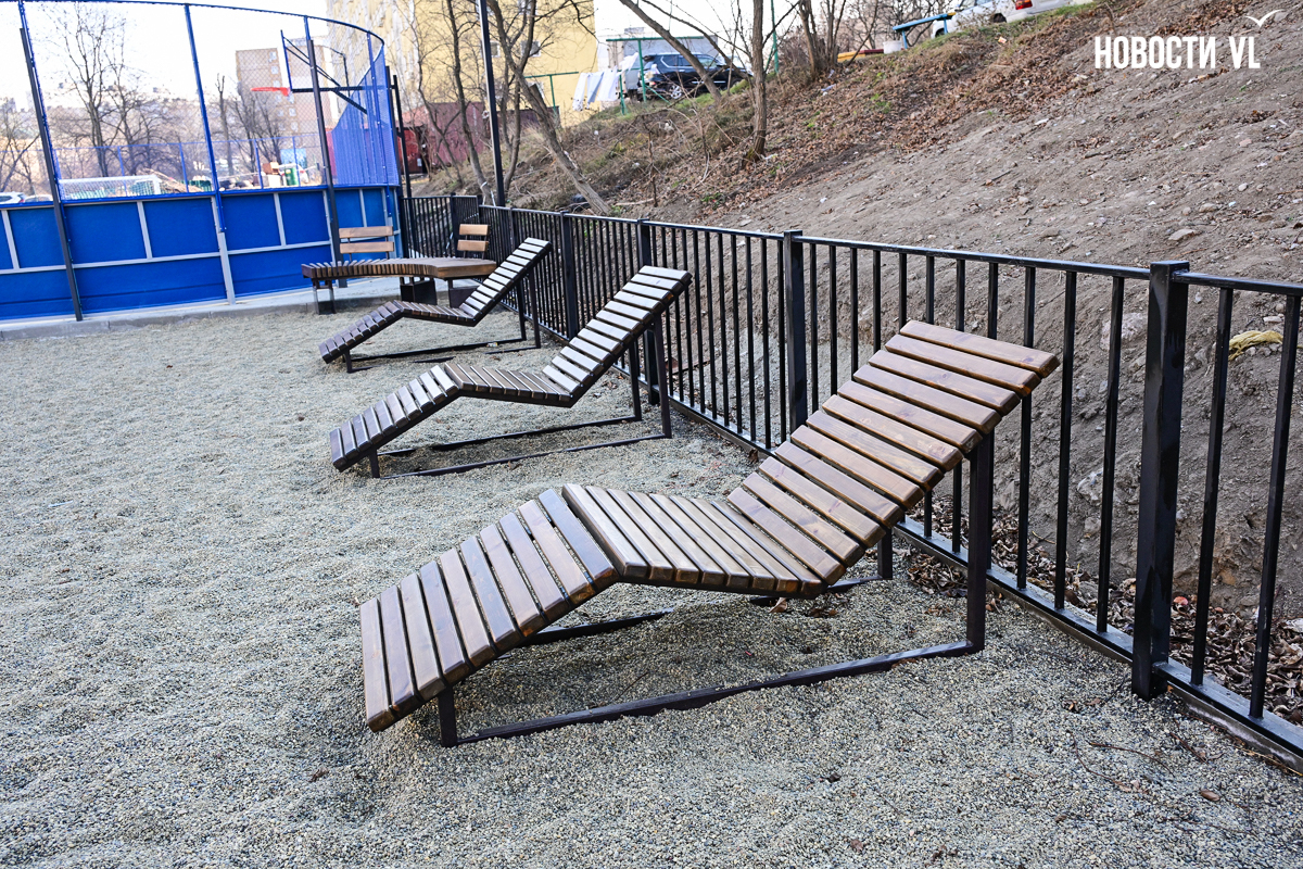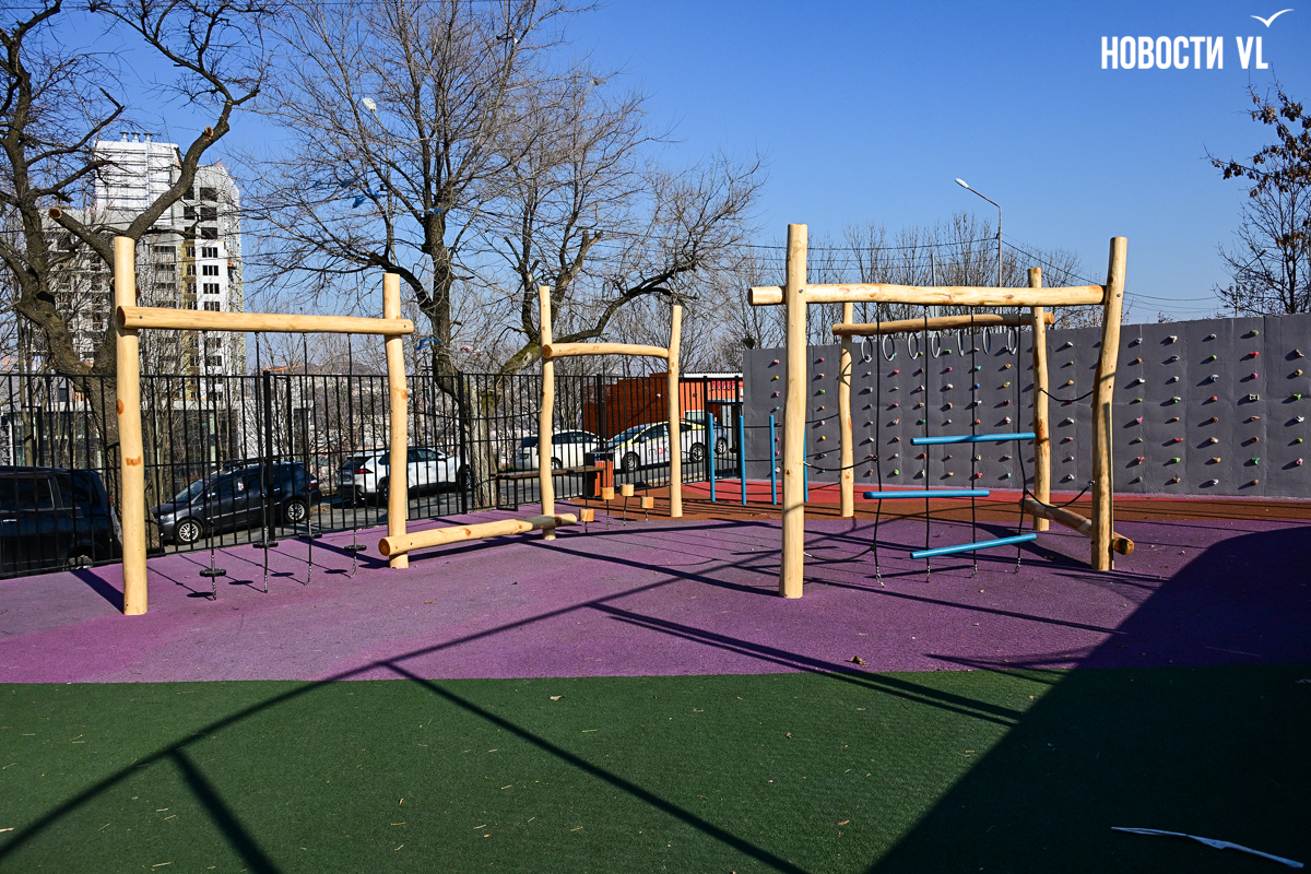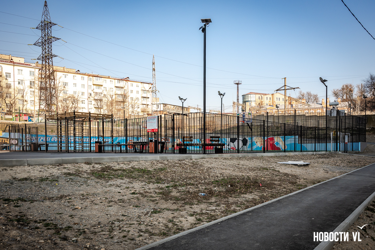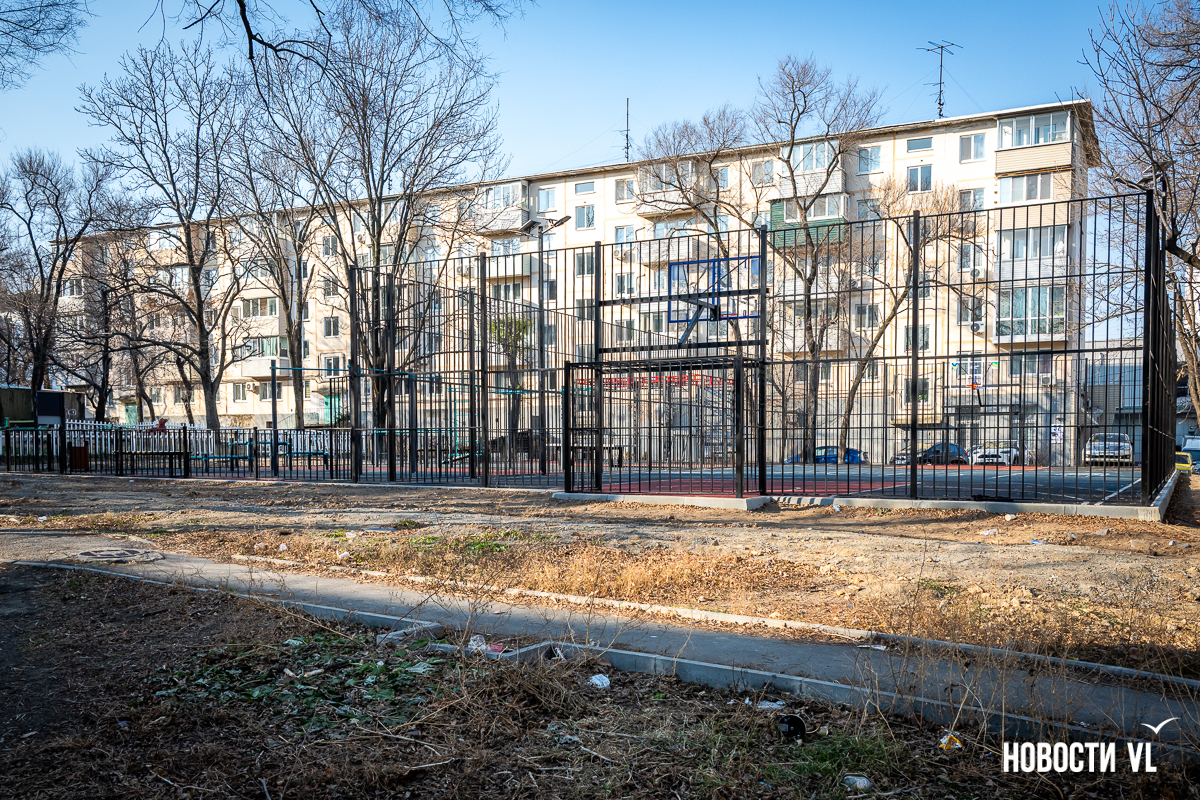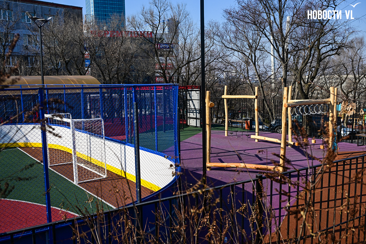 Площадка на пр-те 100-летия Владивостока, 129-135 полностью новая (780 кв. м, 18,43 млн рублей), раньше здесь был пустырь. В теории есть возможность заливки катка, но пока этого делать не будут – рядом проходят две трубы канализации, в мэрии посмотрят, будет ли участок под каток замерзать.