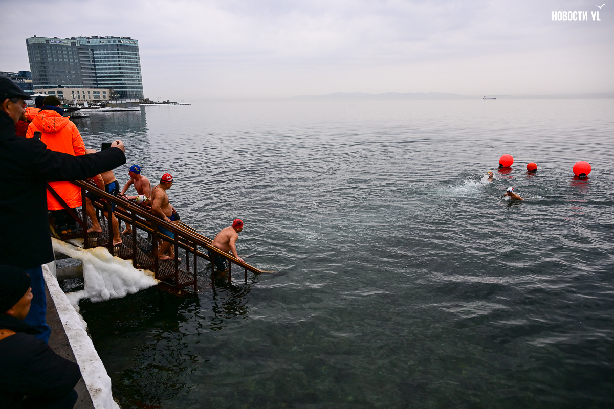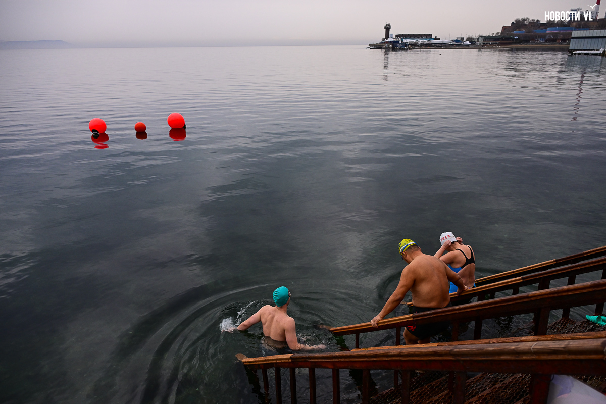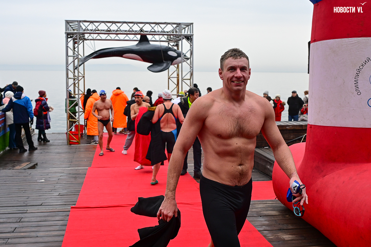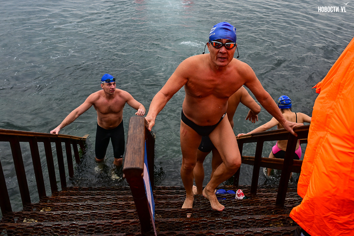 Председатель приморской федерации зимнего плавания «Косатка ДВ» Олег Докучаев рассказывает, что с декабря 2023 года соревнования проводили не в море, а в бассейне, но из-за недавнего пожара в ресторане на барже, где находится бассейн, место заплывов пришлось переносить. Как оказалось, спортсменам это даже в плюс.