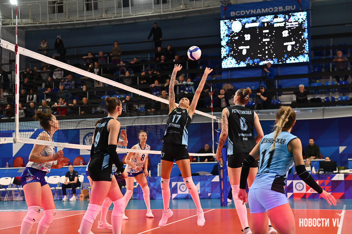 Матч против «Атом-Курск» в рамках укороченного (из-за снятия с чемпионата ВК «Липецк») тура во Владивостоке стал для «Динамо» первым домашним за 2 месяца. К нему приморская дружина подошла в боевом составе: в доигровке – Кайи Жэнь и Ксения Вытришко, первый темп – Софья Ротастикова, а также три Анастасии – блокирующая Медведева, диагональная – Шупенёва, связующая – Лопато. Либеро – Виктория Дахновская и Вероника Сулимова.