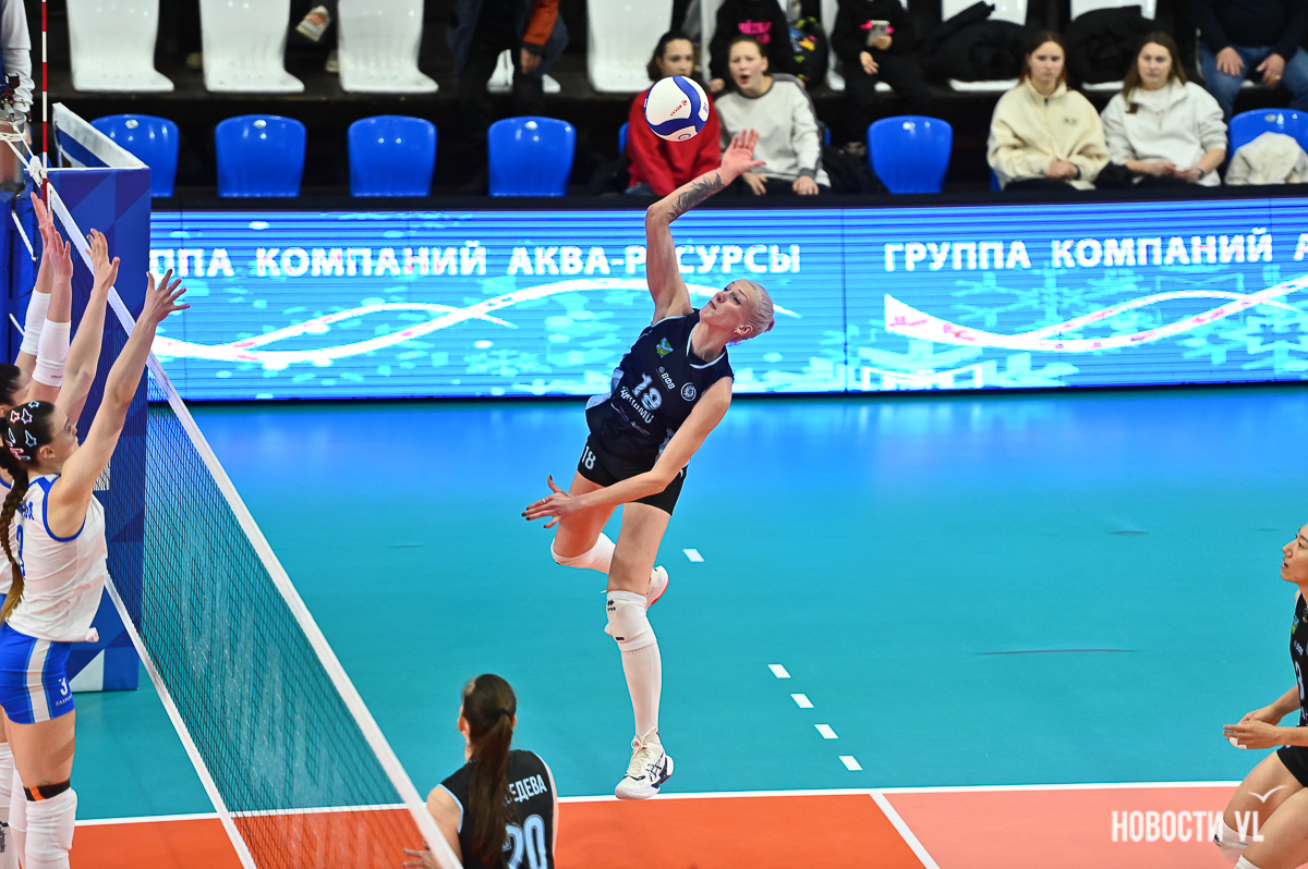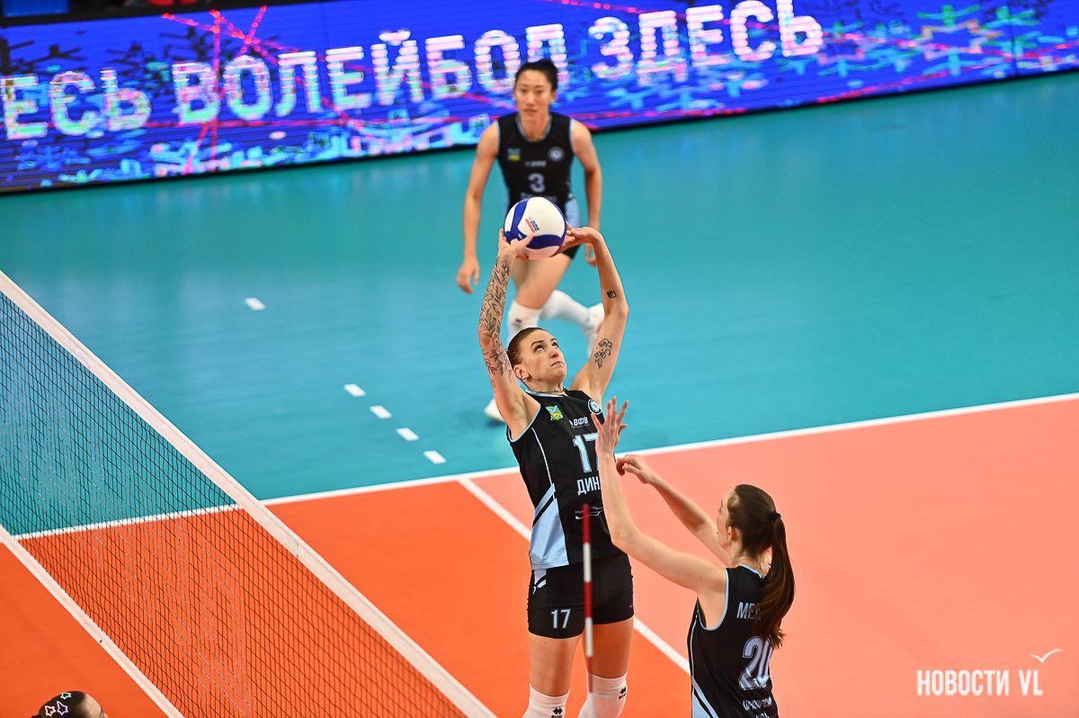 Несмотря на упорное сопротивление уфимок до середины третьей партии, в концовке лидеры приморского «Динамо» действовали слаженно и обеспечили победу в сете – 25:20. Потеряв из-за травмы руки Анастасию Лопато, которую заменила Татьяна Селютина, хозяйки ударно вошли в четвёртый сет, нарастив впечатляющее преимущество, – 8:2. Соперницам удалось сразу же нейтрализовать отрыв и зарубиться на финише, но наша команда справилась с напором противника и забрала матч без потери очков. Решающий удар нанесла Жэнь – 25:23, и победа – 3:1.