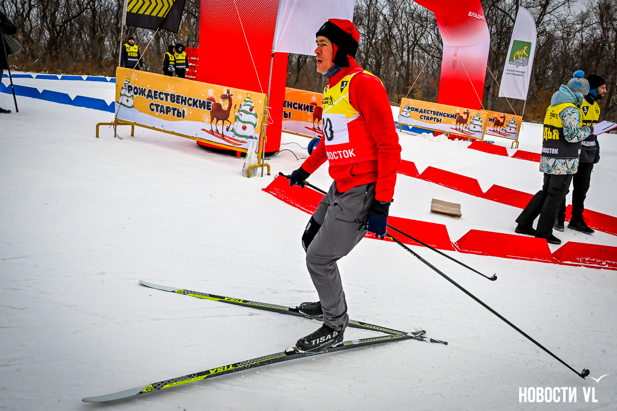 «Три, два, один, старт!» – кричит судья Дмитрий Якухный у начала лыжной трассы. На Русском острове сегодня проходили «Рождественские старты» для всех любителей зимнего спорта. Здесь же 4 января проводили «Мандариновый забег», но если он был некоторой разминкой, то теперь спортсмены идут на результат.