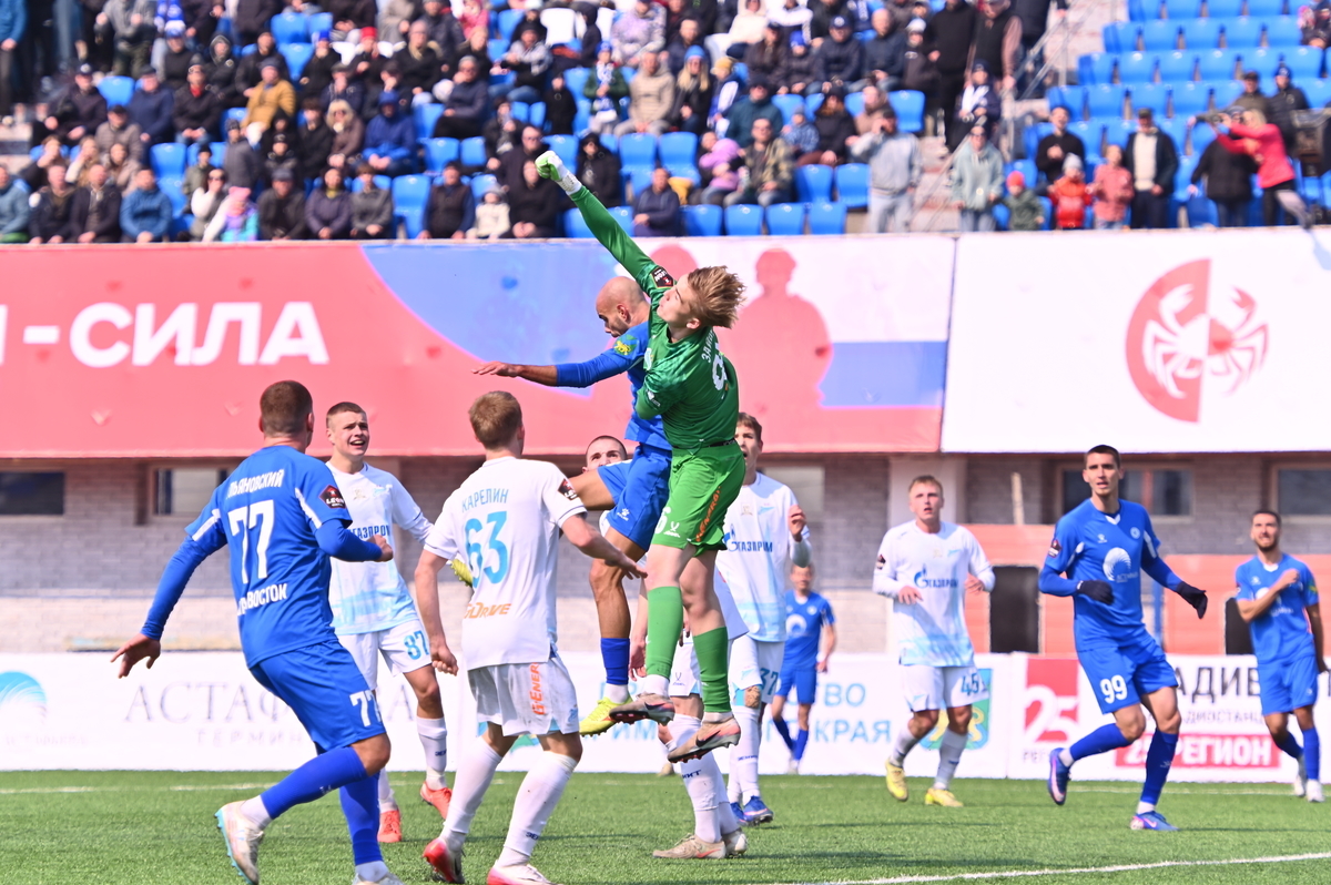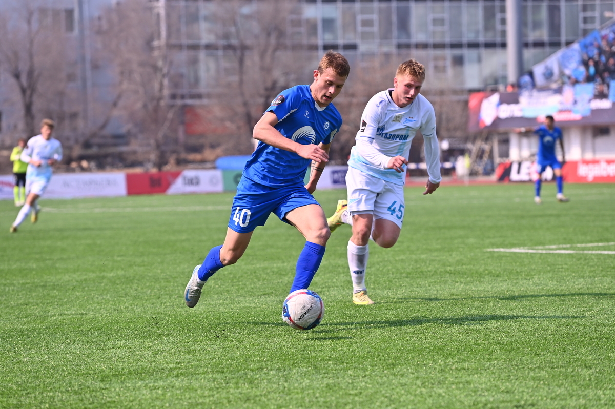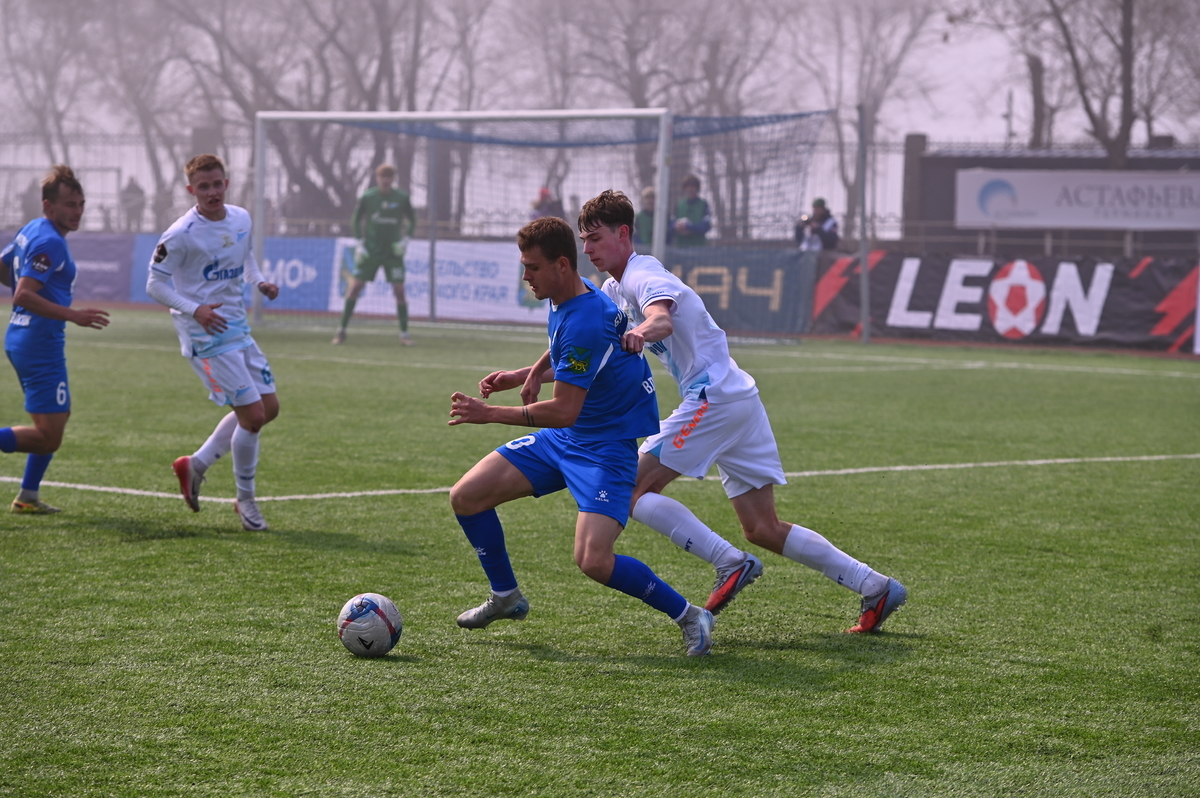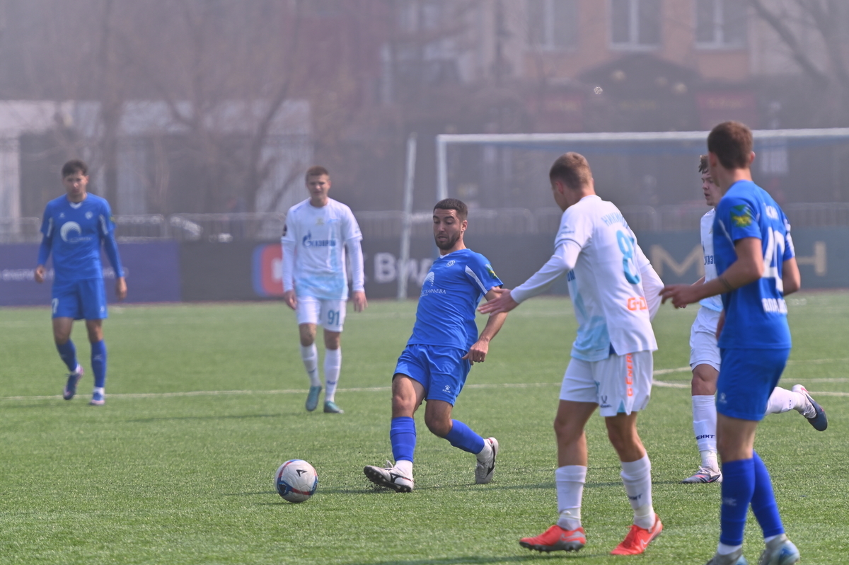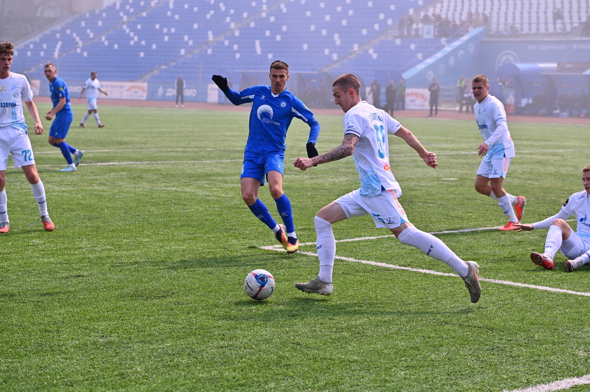 Приморские болельщики с нетерпением ждали возвращения большого футбола во Владивосток, и дождались в конце марта, спустя полгода, когда футболисты «Динамо» на родном стадионе сошлись против чемпиона Второй лиги «Б», второй команды титулованного петербургского «Зенита». В начале встречи «Динамо» понеслось вперёд крупными силами и моментально завладело преимуществом, получив свободное пространство для организации атак, которым, по большому счёту, не хватало завершения. Первый по-настоящему опасный момент возник на 8-й минуте, когда Касаткин получил пас в центре штрафной, но не смог выстрелить без опеки, попав под подкат «зенитовца», зато успел пробить, лёжа на газоне, правда, парировал голкипер. Гости действовали вторым номером, однако одна из контратак принесла им гол: Матвей Иванов открыл счёт головой после дальнего заброса в штрафную зону – 1:0.
