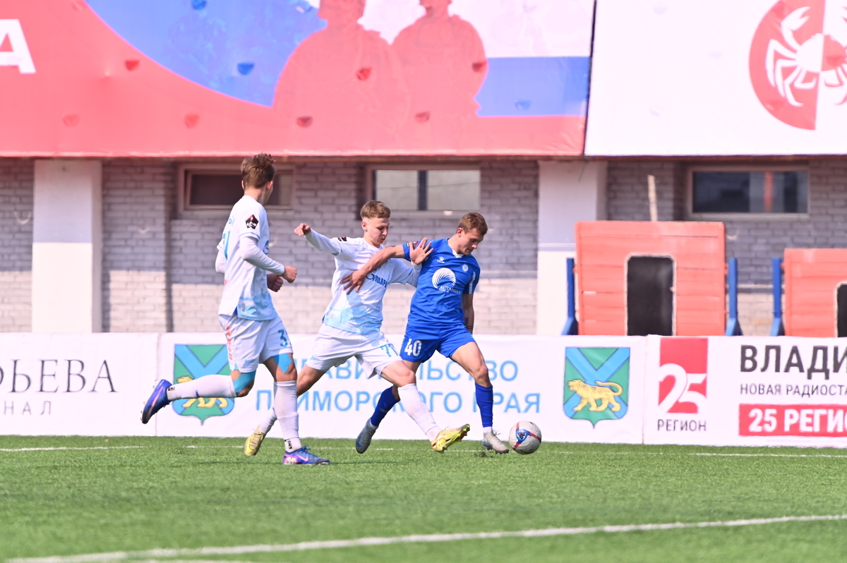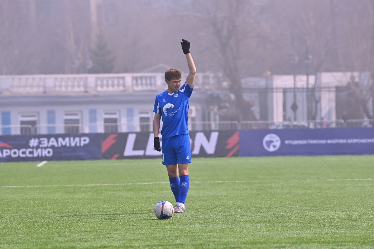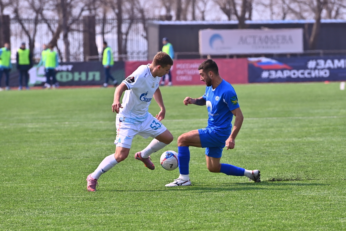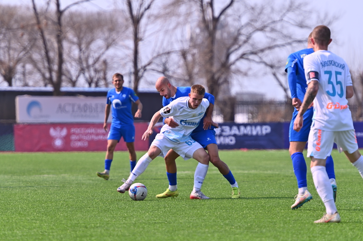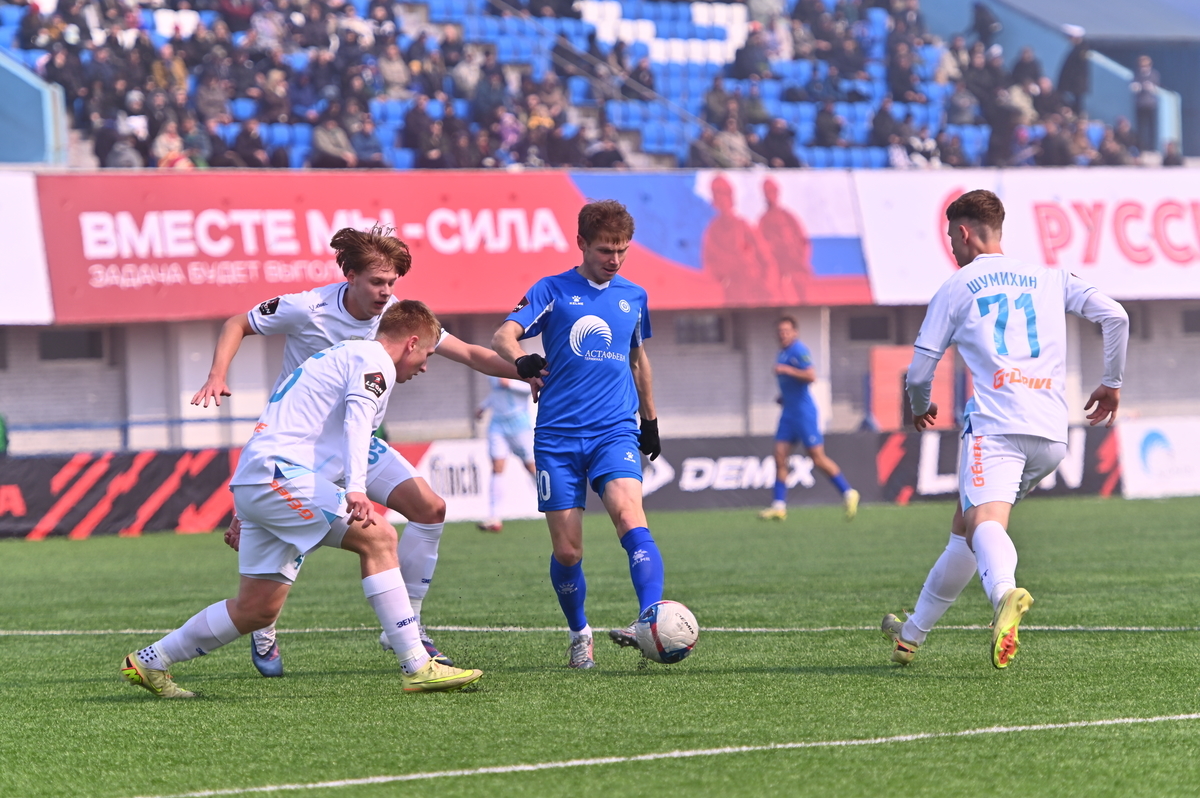 Приморские болельщики с нетерпением ждали возвращения большого футбола во Владивосток, и дождались в конце марта, спустя полгода, когда футболисты «Динамо» на родном стадионе сошлись против чемпиона Второй лиги «Б», второй команды титулованного петербургского «Зенита». В начале встречи «Динамо» понеслось вперёд крупными силами и моментально завладело преимуществом, получив свободное пространство для организации атак, которым, по большому счёту, не хватало завершения. Первый по-настоящему опасный момент возник на 8-й минуте, когда Касаткин получил пас в центре штрафной, но не смог выстрелить без опеки, попав под подкат «зенитовца», зато успел пробить, лёжа на газоне, правда, парировал голкипер. Гости действовали вторым номером, однако одна из контратак принесла им гол: Матвей Иванов открыл счёт головой после дальнего заброса в штрафную зону – 1:0.