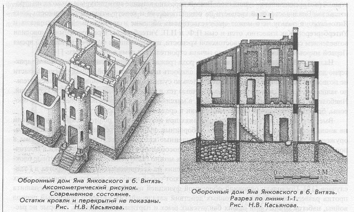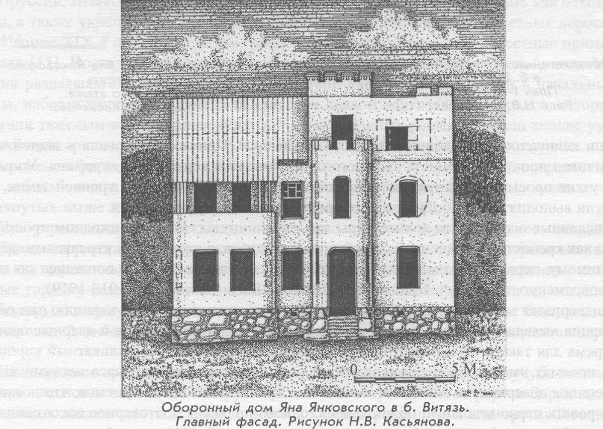 Несмотря на сравнительно небольшой размер, замок Янковского был весьма вместительным строением: здесь были и жилые комнаты, и бильярдная, и даже потайной ход, который вел к расположенному неподалеку водопаду. Словом, это была такая же крепость, как и имение отца в Сидеми – рассчитанная на войну с маньчжурами. Фундамент, подвальная «тайная комната» и крыльцо сложены из большого камня, парадный вход расположен в сторожевой башне, которую, как и всю крышу дома по периметру, венчают оборонительные зубцы.