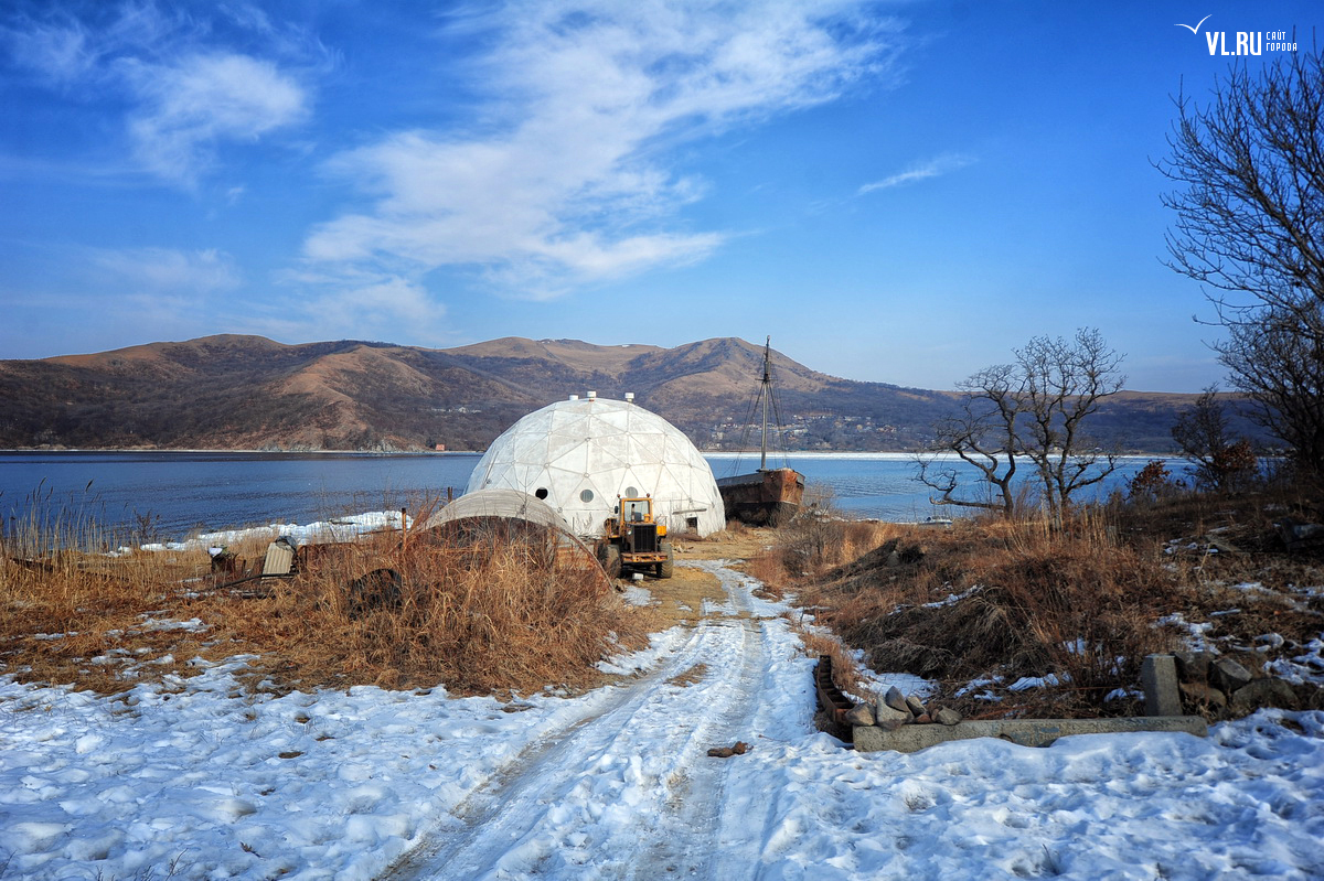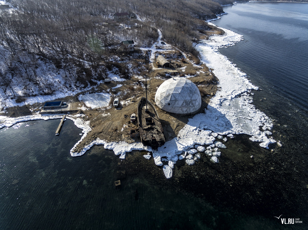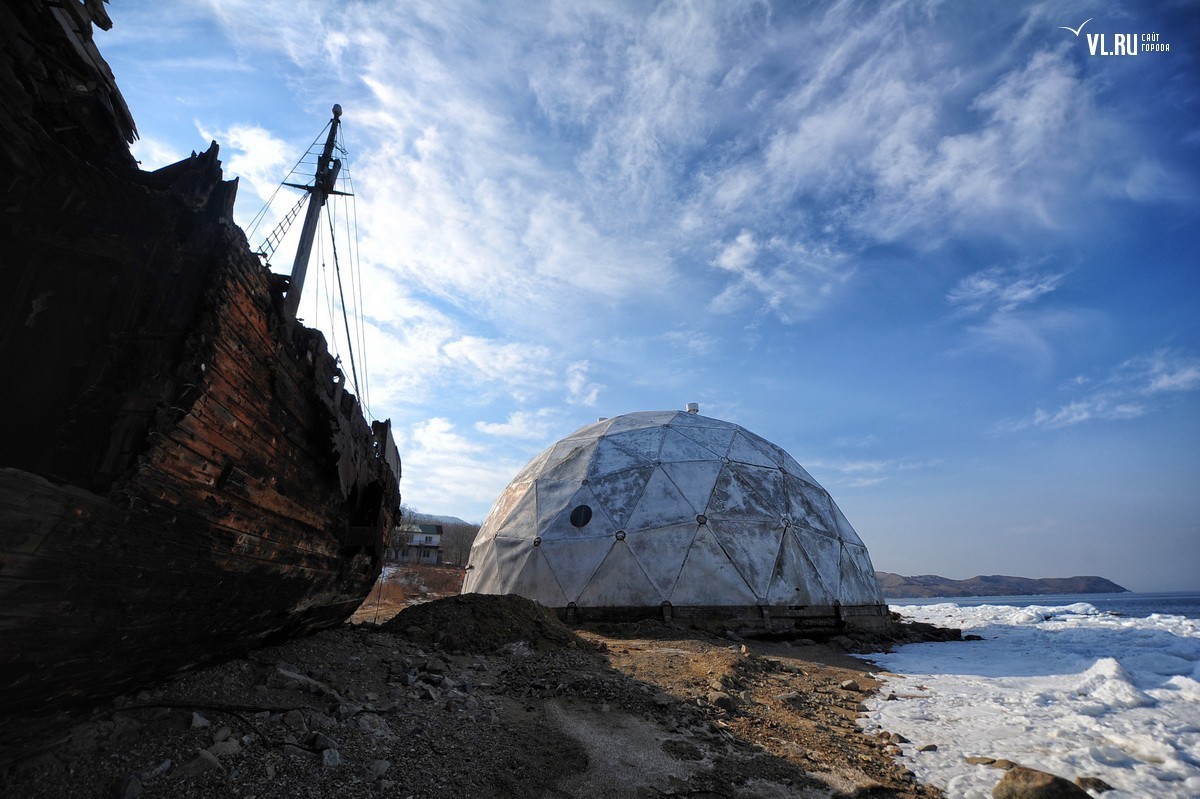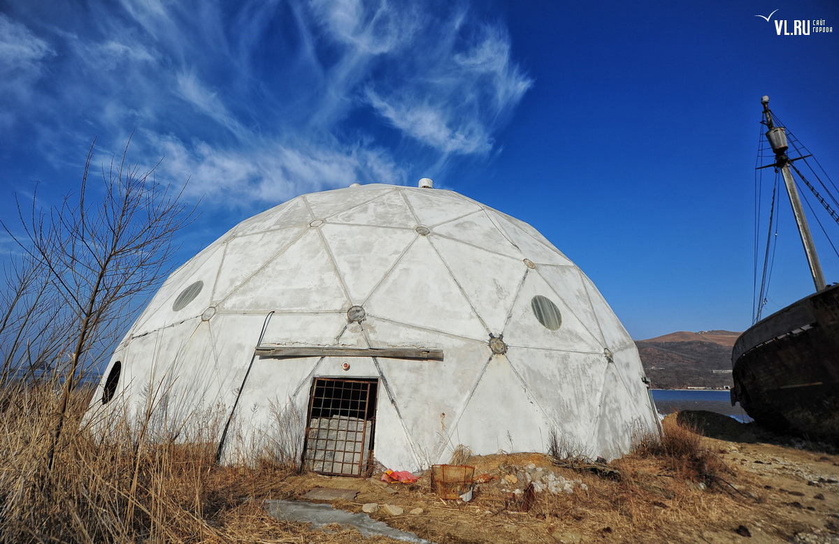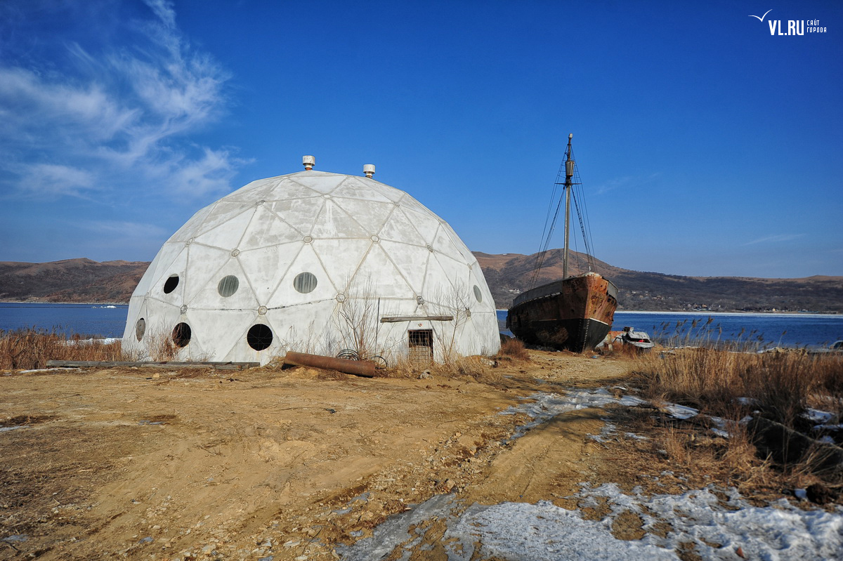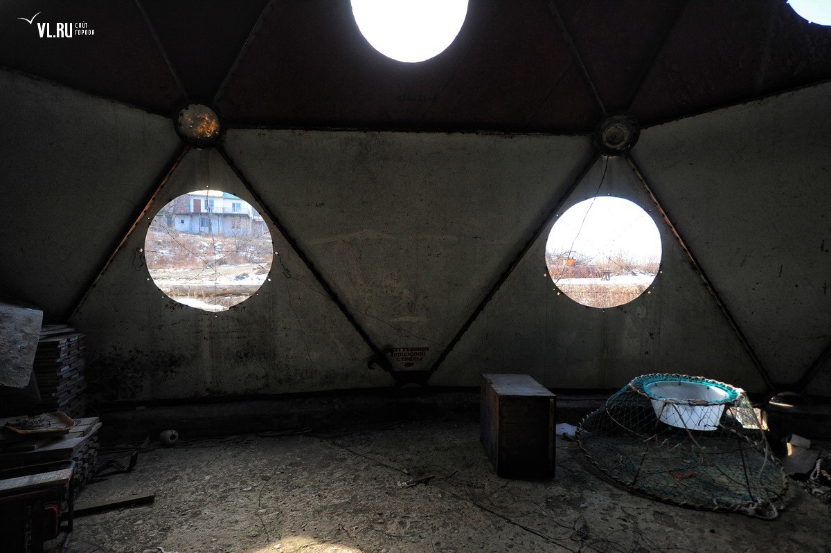 «Состав штатных работников там в основном из гражданских был, – рассказывает Александр Третьяков. – А вот когда перебрались на тот берег, к вытащенной на сушу шхуне "Ларга", появилось множество людей в форме, патрульный катер "Амур", пост трехсменный круглосуточный, колючая проволока и прочие атрибуты военной жизни. Когда были в 2000 году там, посмотрели шарик изнутри. Похоже на небольшой гражданский дельфинарий, такие же кольцевые трибуны ступенями. Еще там была пара открытых бассейнов, сверху полуцилиндрическое покрытие, наподобие ангаров или парников».