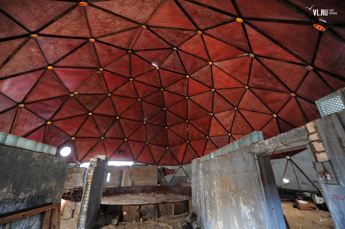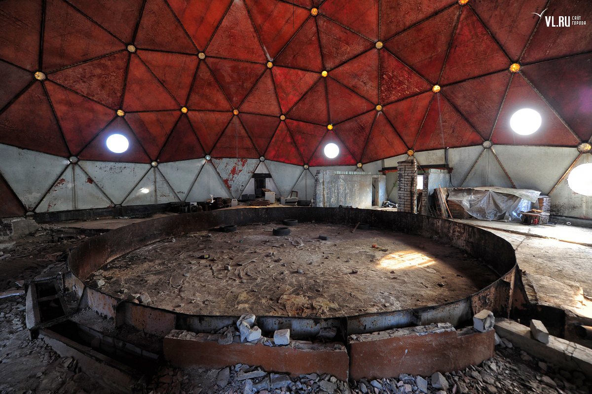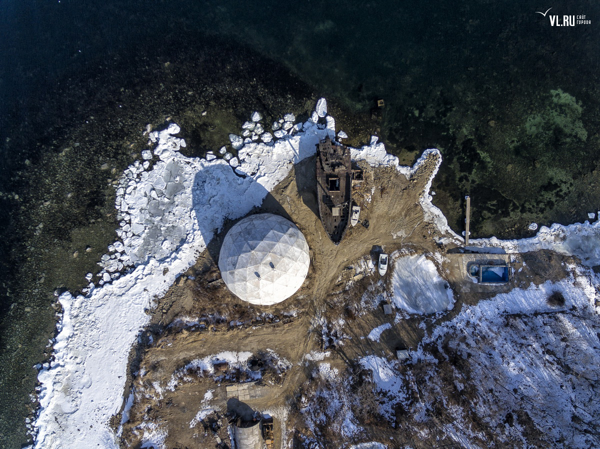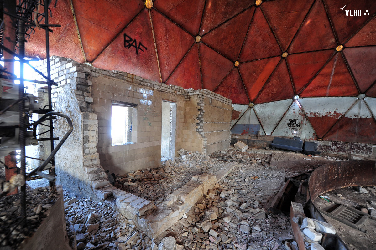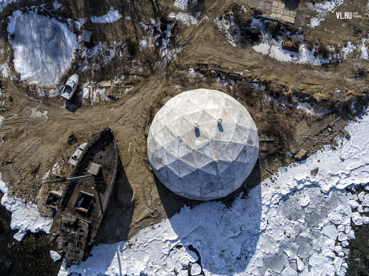 «Состав штатных работников там в основном из гражданских был, – рассказывает Александр Третьяков. – А вот когда перебрались на тот берег, к вытащенной на сушу шхуне "Ларга", появилось множество людей в форме, патрульный катер "Амур", пост трехсменный круглосуточный, колючая проволока и прочие атрибуты военной жизни. Когда были в 2000 году там, посмотрели шарик изнутри. Похоже на небольшой гражданский дельфинарий, такие же кольцевые трибуны ступенями. Еще там была пара открытых бассейнов, сверху полуцилиндрическое покрытие, наподобие ангаров или парников».