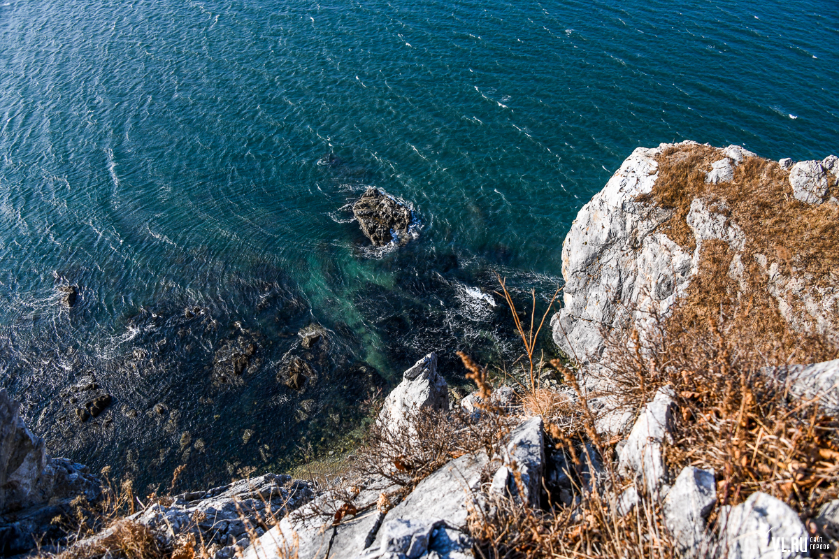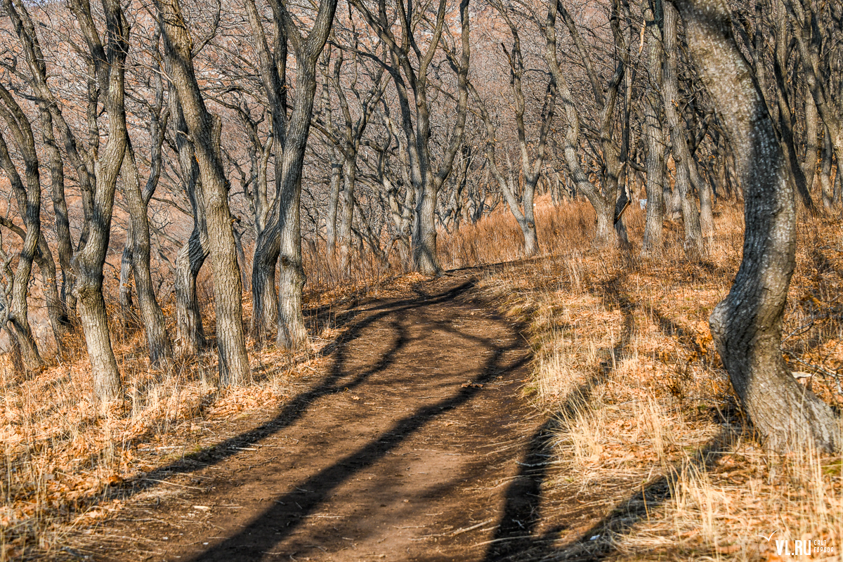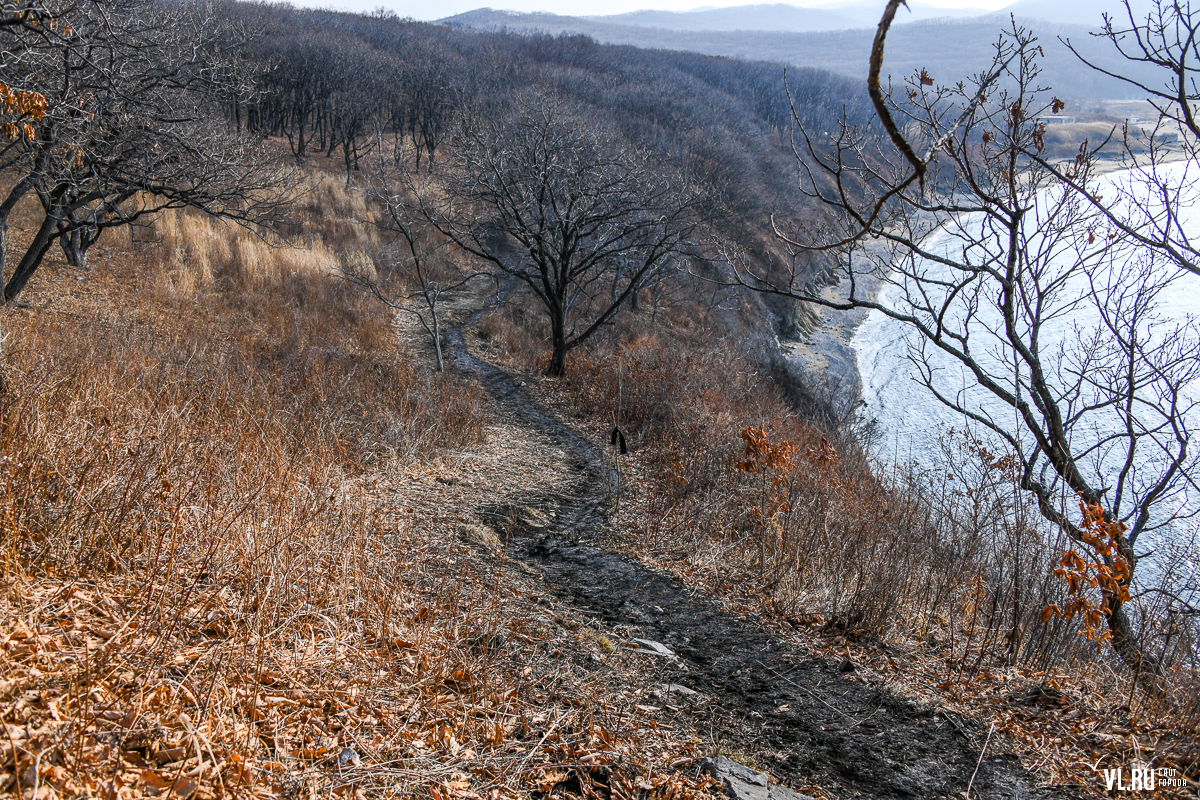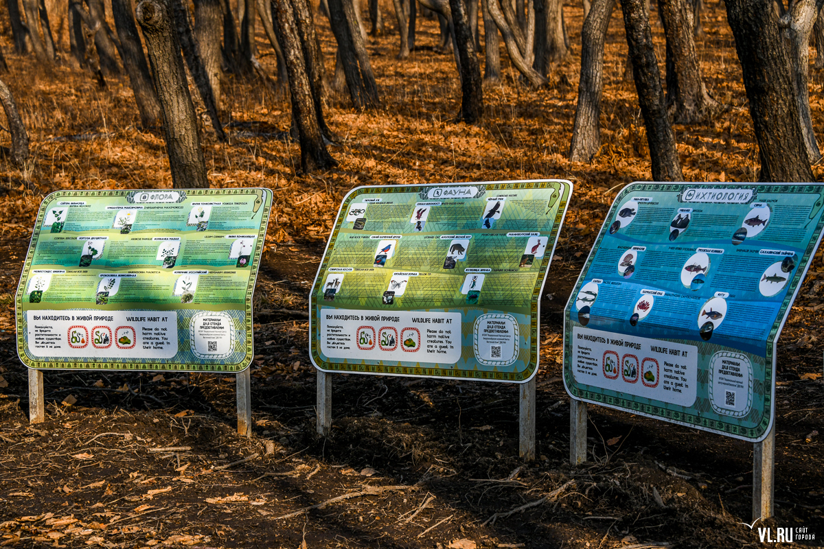 Пройдя немного по пляжу, углубляемся в небольшой лесок и двигаемся по протоптанной тысячами туристами тропе. Заблудиться здесь невозможно, направление движения хорошо просматривается. Прямо на тропинке расположено несколько щитов с описанием флоры и фауны, а также истории Находки.
