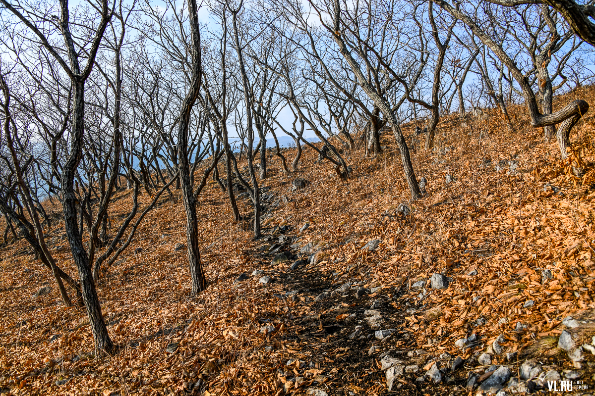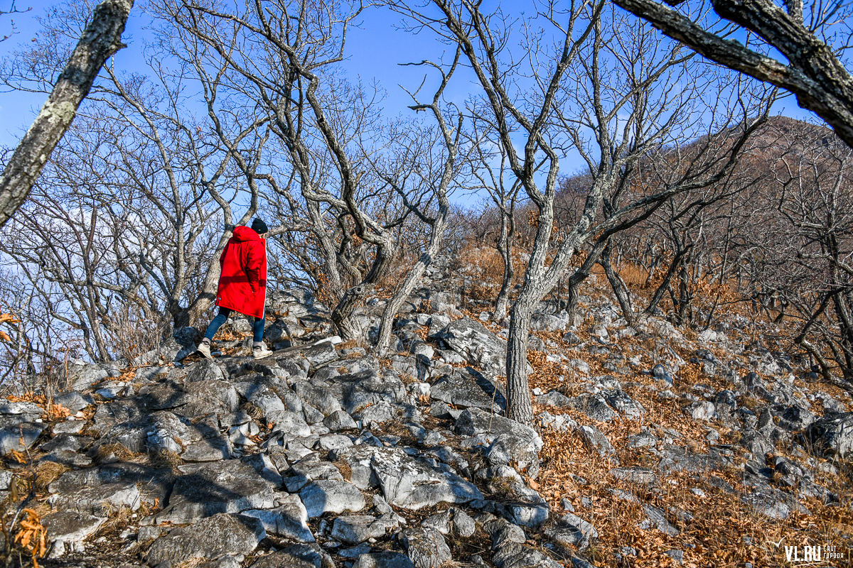 С каждым десятком метров подъём становится всё круче, а деревья практически исчезают. На торчащих скальных породах приходится включать концентрацию на максимум. Ноги так и норовят соскользнуть или провалиться между камней. Ну а получить растяжение или, что хуже, перелом – не лучшее завершение прогулки, поэтому будьте осторожны.