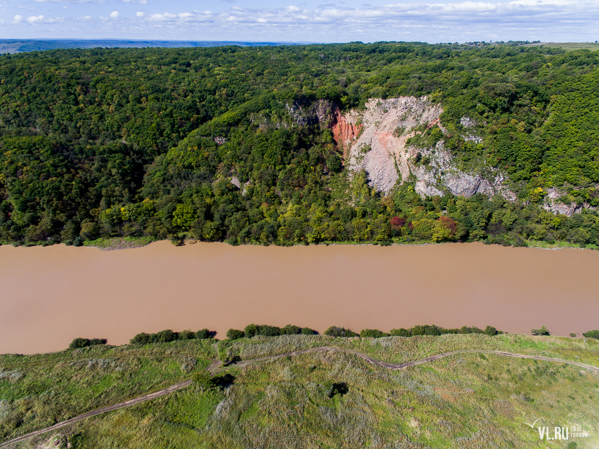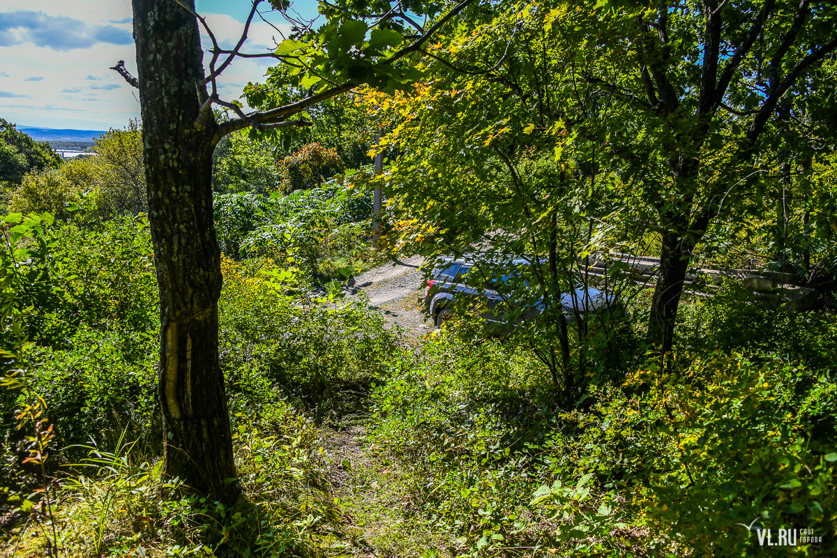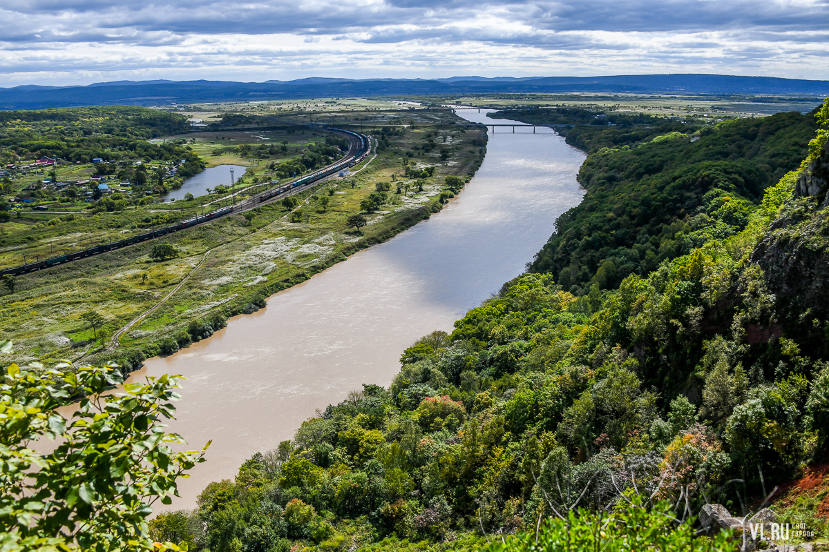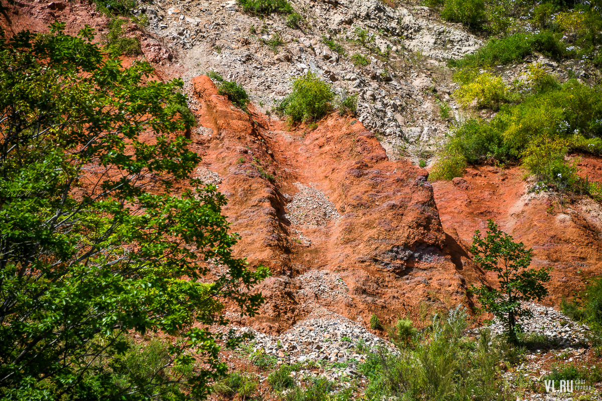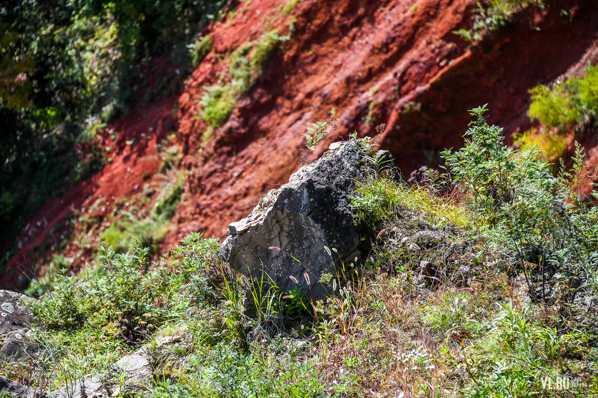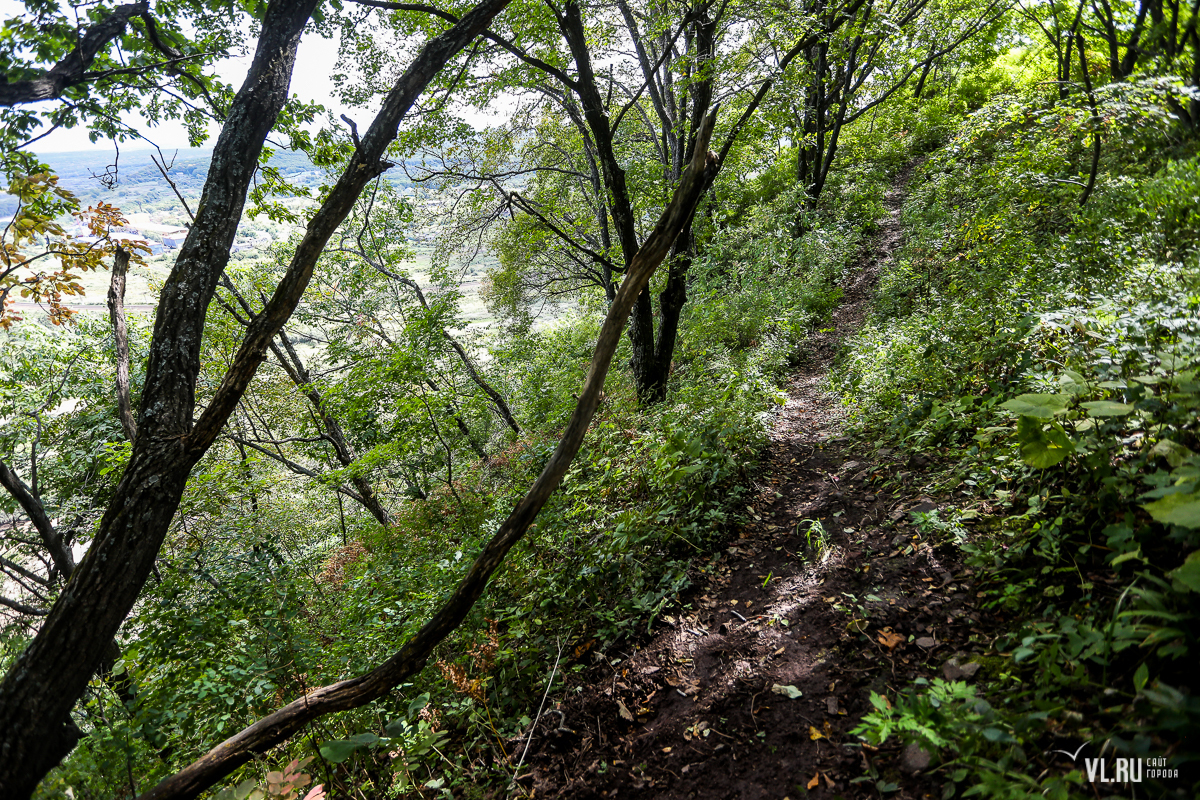 Отсюда открывается красивый вид на долину реки Раздольной, вдали слышится шум проезжающих через железнодорожную станцию Барановский составов, и только чуть красный клен у подножия вулканической стены напоминает, что в Приморье пришла осень.