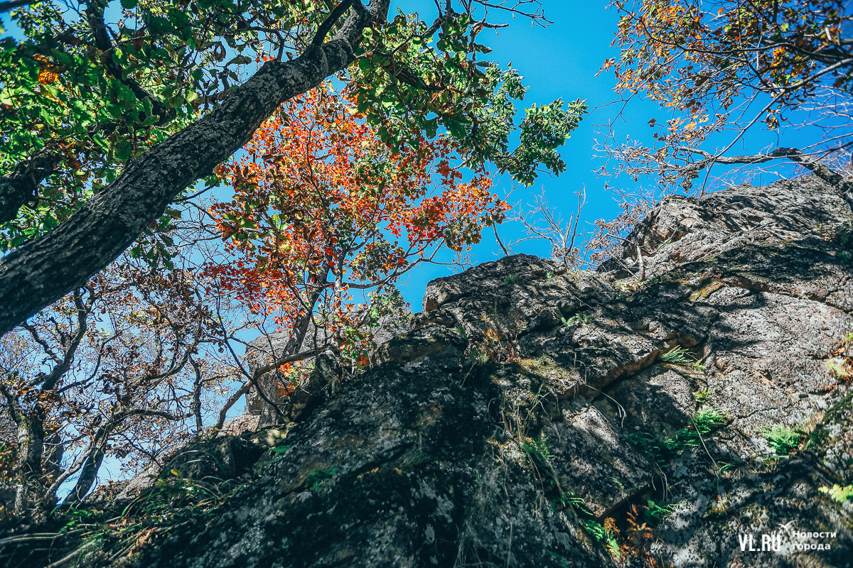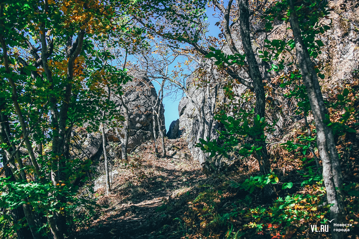 Гора с хищным названием Орлиный Коготь в окрестностях бухты Лазурной (Шамора) – прекрасный и дружелюбный пеший маршрут для тех, кто не готов тратить много времени на дорогу и сил на подъём, но хотел бы провести выходной день наедине с природой. Особенно сейчас, в октябре, в желтеющем приморском лесу, когда можно ещё поймать на прощанье тёплую погоду. А дошедших до конца ждёт награда – потрясающие виды с вершины на сопки и море во все стороны.