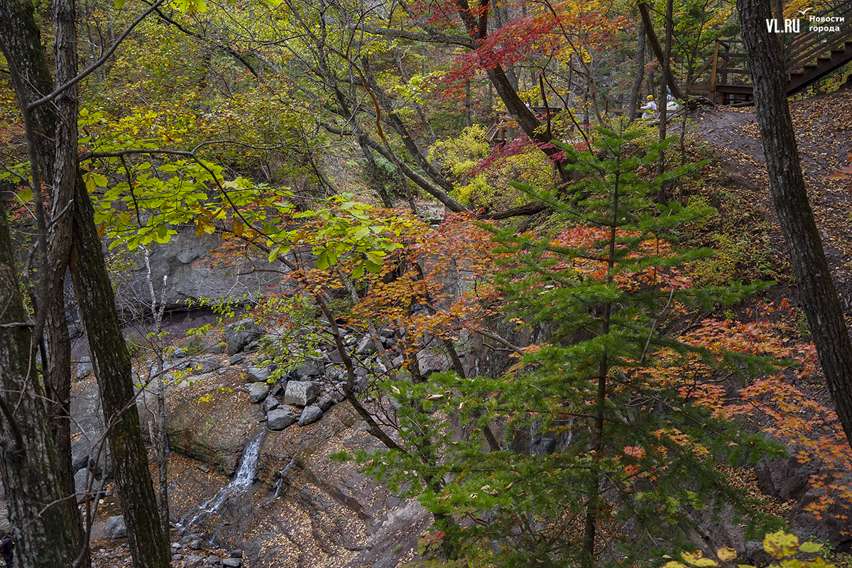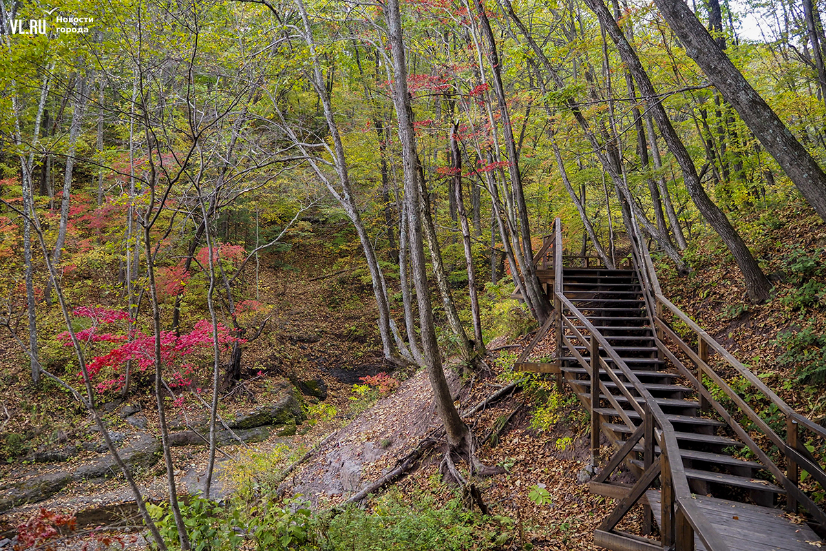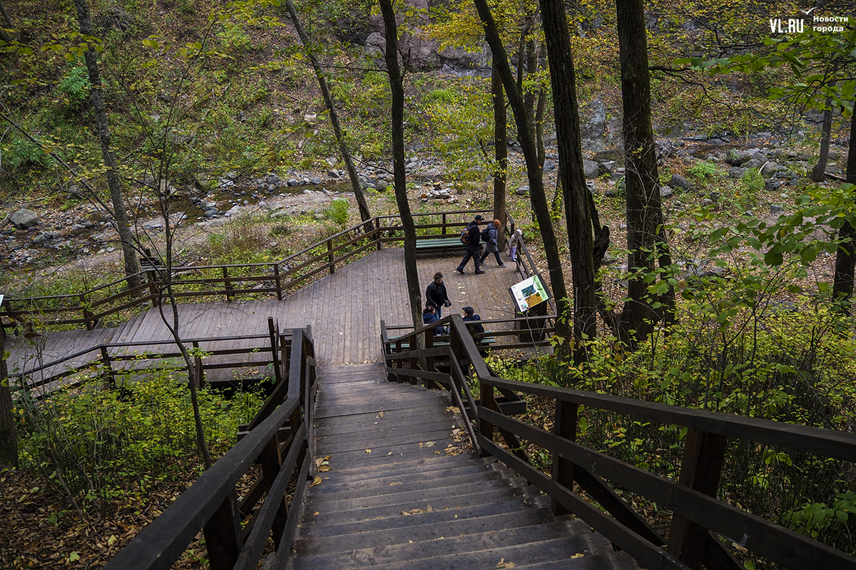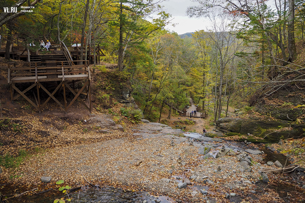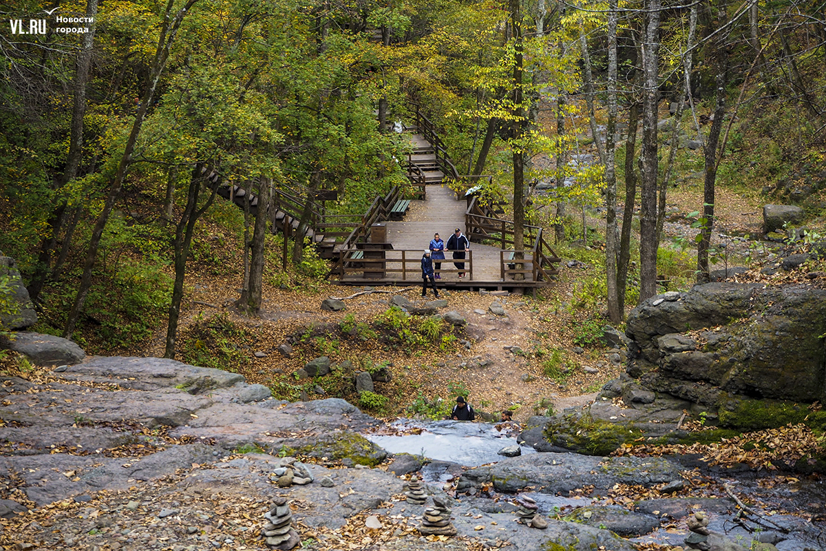 Кравцовские водопады – излюбленное место для прогулок многих приморцев. Это самые доступные из всех водопадов в крае и единственные с благоустроенной экотропой. Сейчас здесь самая красивая пора – деревья одеваются в осенний наряд, а вода уютно шумит в камнях.