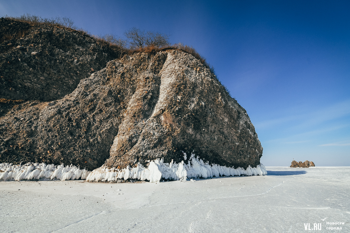 Отметим, что хождение по льду может быть опасным для жизни, если выбрать неправильные погодные условия и сезон. Мы советуем внимательно изучить метеорологический прогноз перед прогулкой по замёрзшему морю. Также напомним, что с 1 марта выход на лёд во Владивостоке будет запрещён.