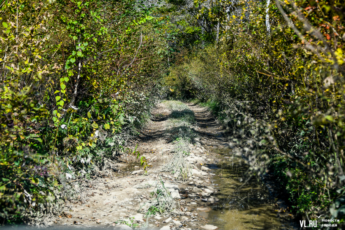 В начале пути проезд выглядел вполне достойно и проходимо, но с каждым километром колея становилась глубже, кусты по бокам – выше, а пространство для перемещения – уже. И вот спустя 5 километров мы уже едем по узкой дорожке, периодически преодолевая размытые дождями участки пути. Легковой транспорт тут точно не пройдёт. Так что если и ехать сюда на своей машине, то минимум на паркетнике, а лучше всего – на подготовленном джипе.