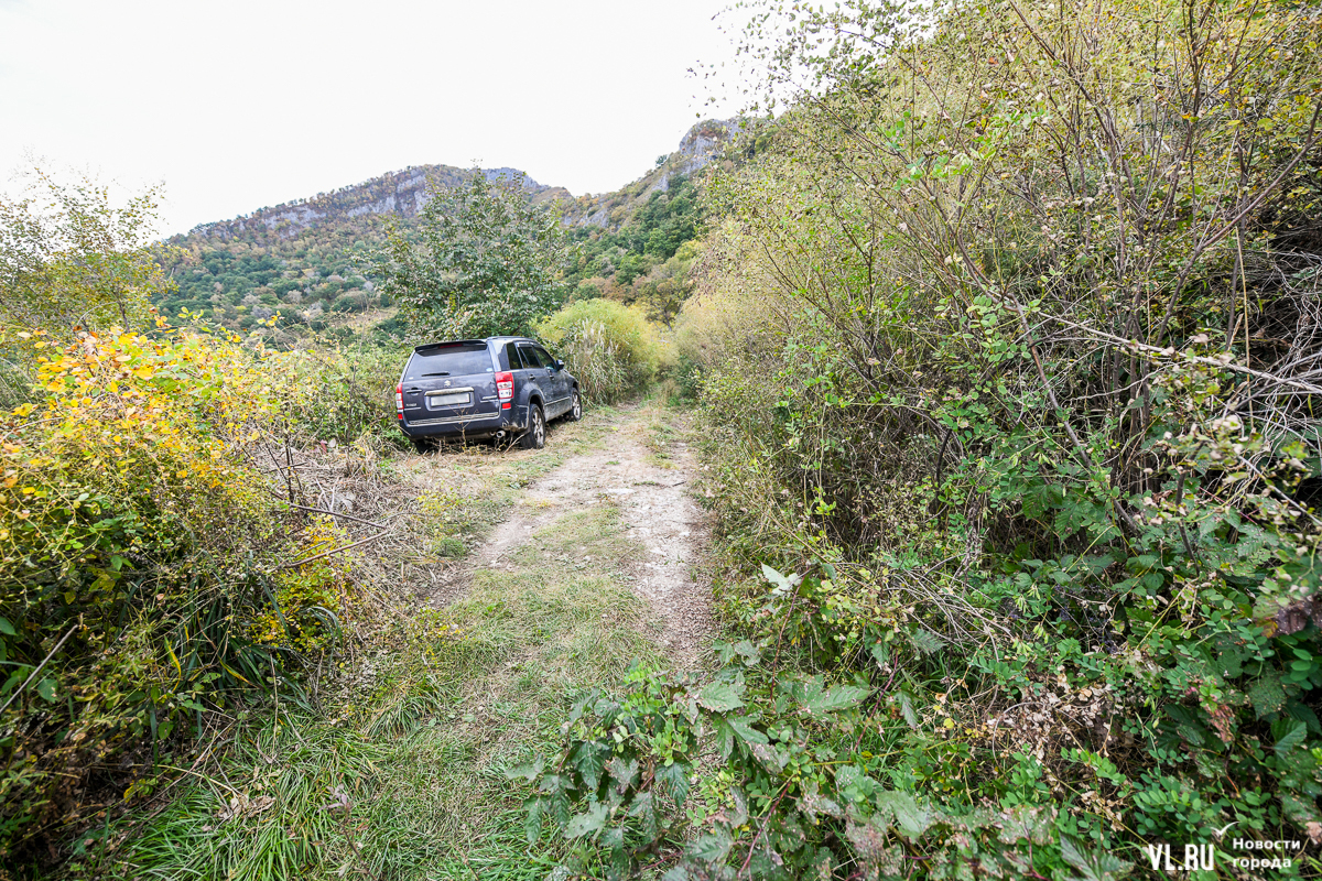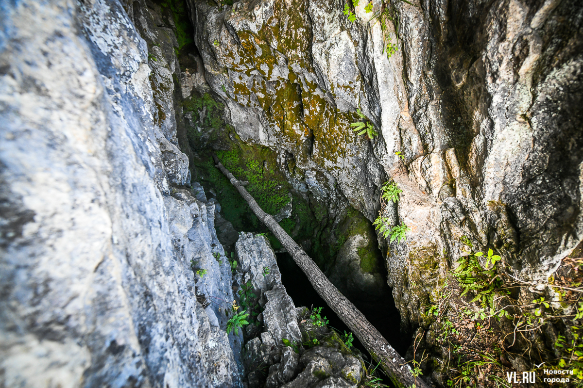 Расстояние до Близнеца от места стоянки составило всего несколько сотен метров. Мы быстро спустились к пещере и сразу поняли, что войти внутрь не получится. Пещера представляет собой колодец, уходящий вниз на десятки метров. Попасть туда без специального оборудования просто невозможно. Посмотрев на Близнеца у входа, мы отправились обратно к машине. Далее нам предстоял обратный путь до Екатериновки, который занял около часа, а затем – дорога во Владивосток.