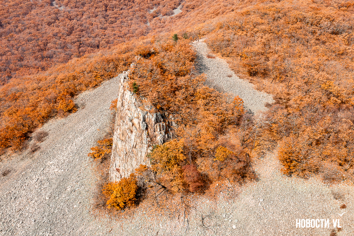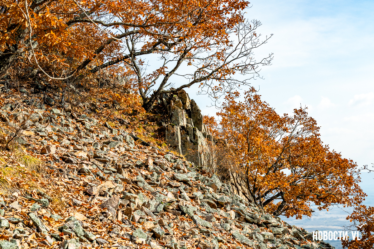 Ущелье Дарданеллы – одно из популярнейших туристических направлений осеннего Приморья. В основном группы отправляются по протоптанным дорожкам на видовую скалу Замок Принцессы. А сегодня мы расскажем вам о ещё одном интересном месте – скале Зуб Бабы-яги.