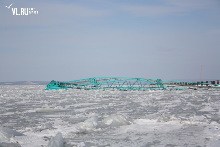 Как выяснил VL.ru, авария произошла с большим японским гусеничным краном Kobelco. По предварительным данным, стрела сломалась из-за большого веса трубы. В результате происшествия никто не пострадал. Сейчас место аварии оцеплено, специалисты решают, как поднимать со дна моря трубу и фрагменты стрелы крана.