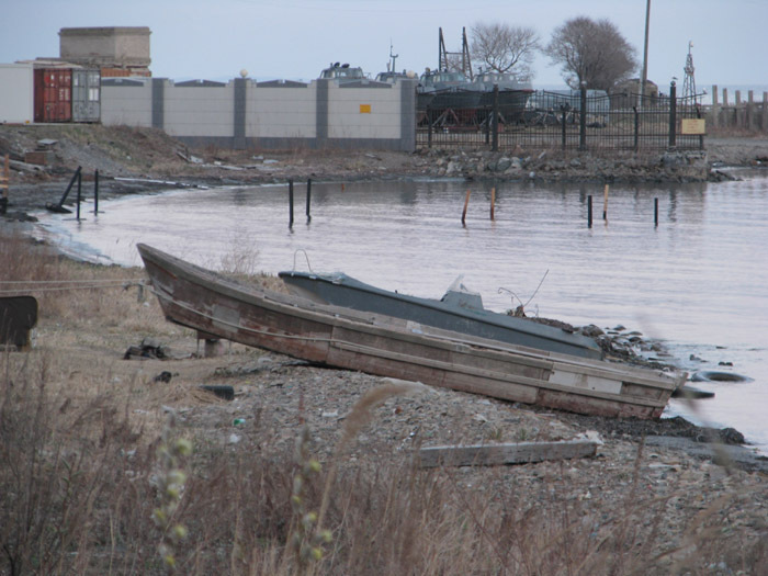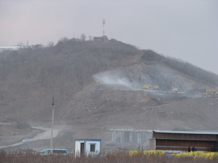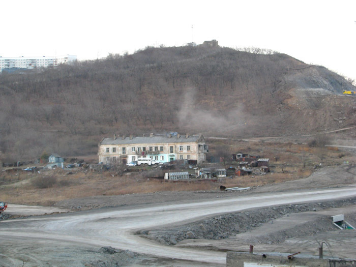 Изрытые склоны сопок, работающая техника и заброшенные остатки одноэтажных казарменных построек на месте так и не построенного Океанариума. Это интересное сочетание можно увидеть в районе бухты Патрокл, рядом с озером Безымянным. Когда-то здесь располагались позиции военного гидроаэродрома с одноимённым названием «Патрокл».