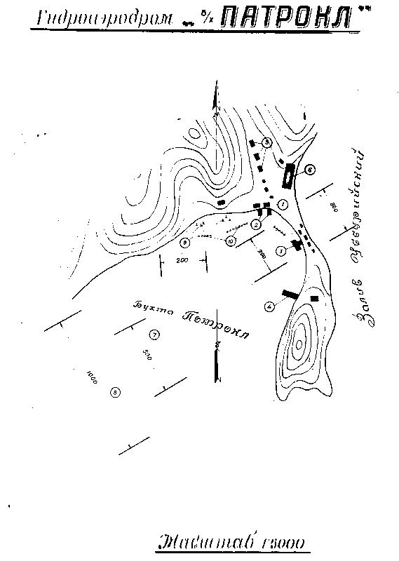 Сохранилось интересное краткое архивное описание аэродрома: «Расположен на южной оконечности полуострова Муравьёва, в бухте Патрокл Владивостокского городского района Приморского края. Форма – прямоугольник 2300х2000 метров. Подходы открыты с востока, юга, запада. С севера подходы стеснены сопками. Связь – телефон, радио. Подъездные пути – шоссе. Дополнительные сведения – грунт дна песчаный, замерзание во второй половине декабря, вскрытие в начале марта. Работа со льда с середины января до конца февраля. Водоснабжение из водокачки, жильё – ДНСы и землянки, столовые».