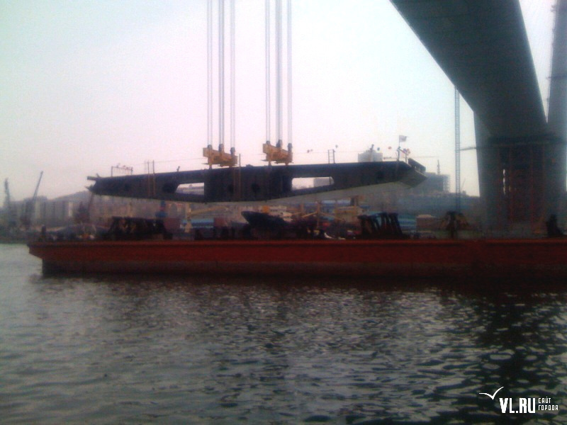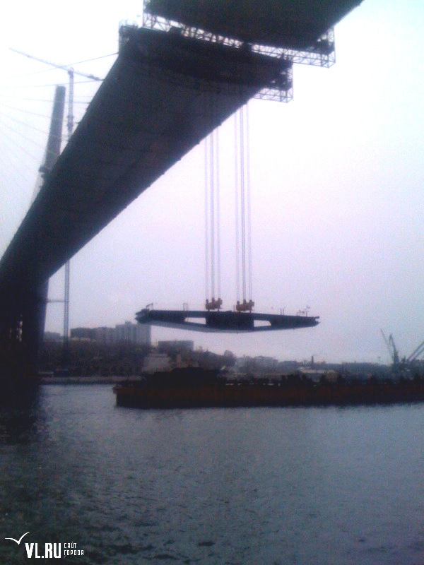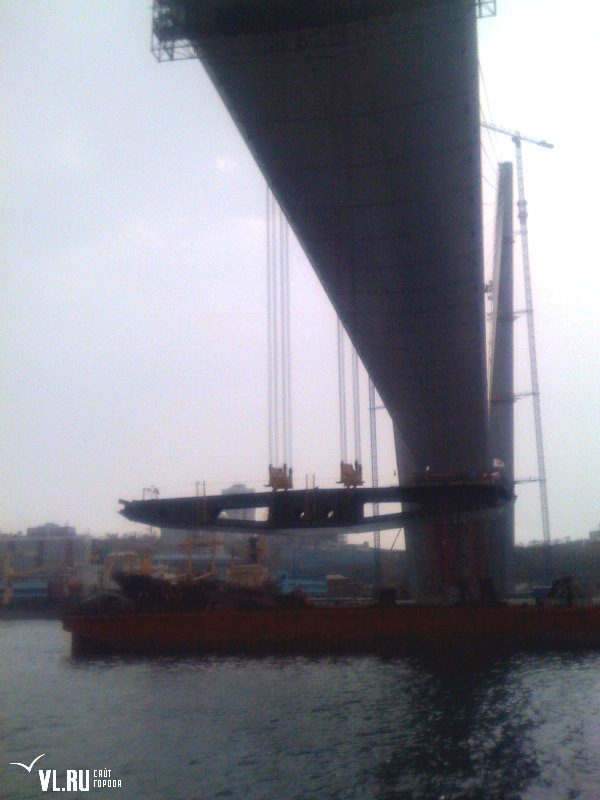 Строители приступили к подъему заключительной, замковой секции моста через бухту Золотой Рог. Об этом сообщает корреспондент VL.ru с места событий.