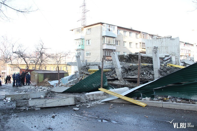 Здание по адресу: Иртышский переулок, 5 во Владивостоке, которое начало рушиться днем, обрушилось полностью, сообщает корреспондент VL.ru с места событий.