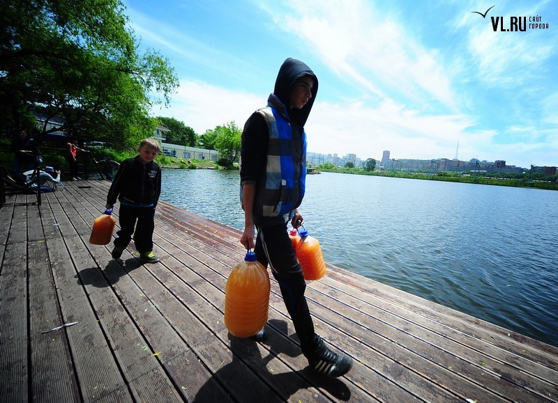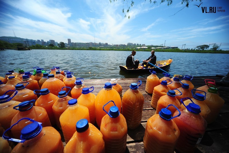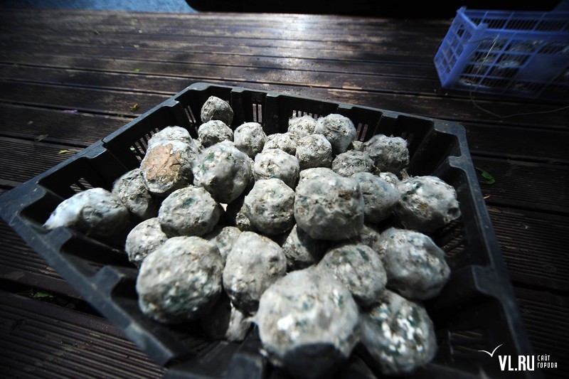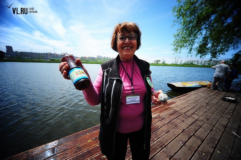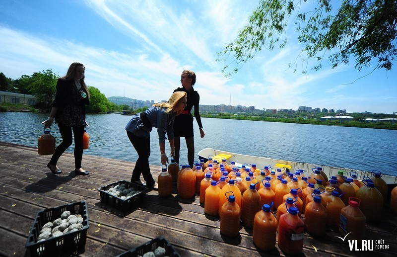 «В этих бутылочках с раствором находятся микроорганизмы, которые проводят титаническую работу по очистке любых загрязненных объектов — в том числе и водных. А дно очень хорошо чистят эти пушистые «колобки». Их приготовили волонтеры медицинского института. Они изготовлены из глины с добавлением ферментированной органики в виде отрубей, а также ЭМ-препарата. После 7-10 дней без солнца они становятся вот такими пушистыми — обрастают культурами. Эти колобки очень эффективно чистят донные отложения от всяких загрязняющих веществ», - пояснила корреспонденту VL.ru организатор акции, генеральный директор ООО «Приморский ЭМ-центр» Валентина Северина.