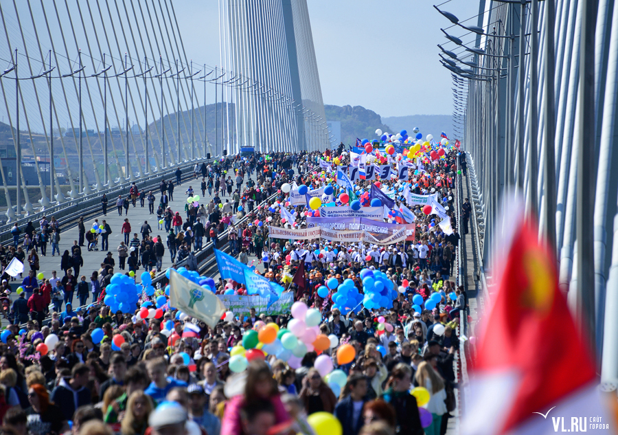 Не успели последние колонны трудящихся дойти до площади, как к людям вышел губернатор. Он еще раз с гордостью подчеркнул, что сегодня первомайская демонстрация прошла по мосту. И сказал добрые слова в адрес подрастающего поколения: «Особые слова я сегодня хочу сказать в адрес молодежи. Вы — будущее Приморья. От вас зависит, каким наш край будет завтра».