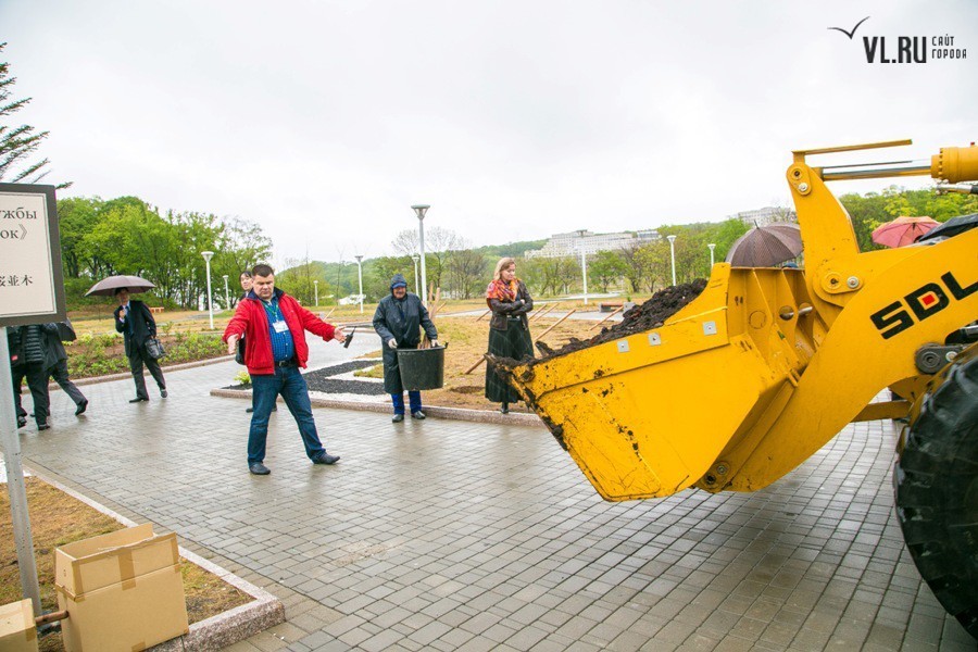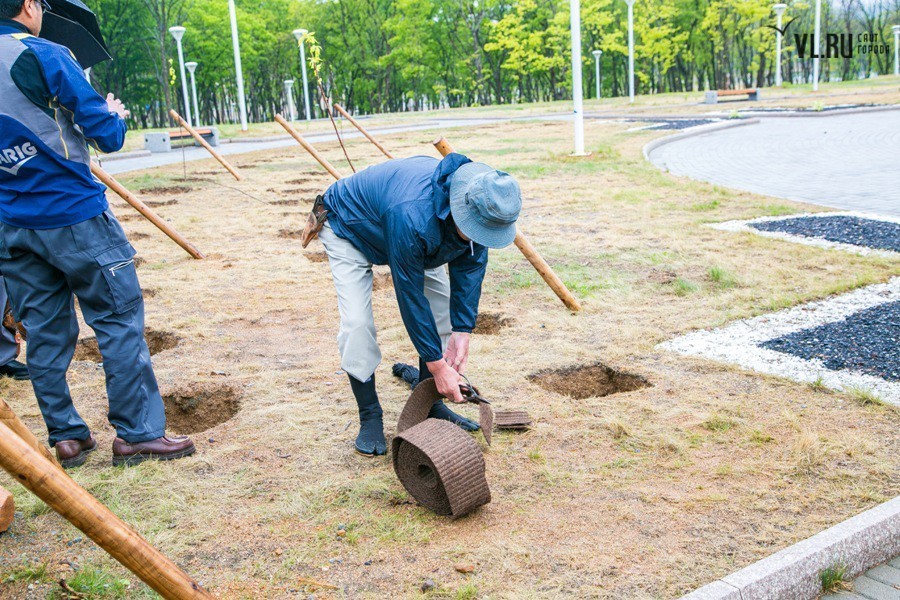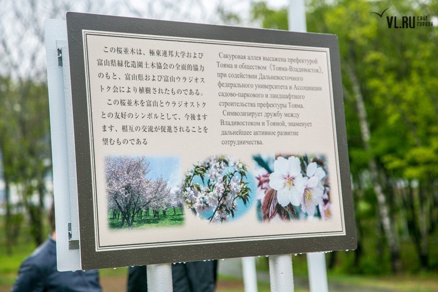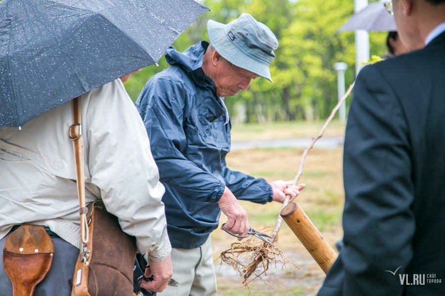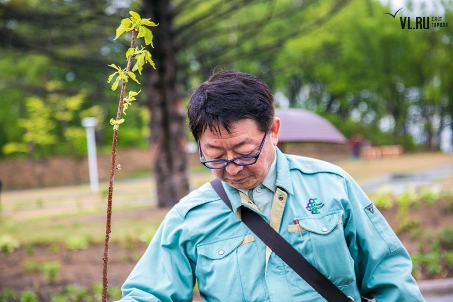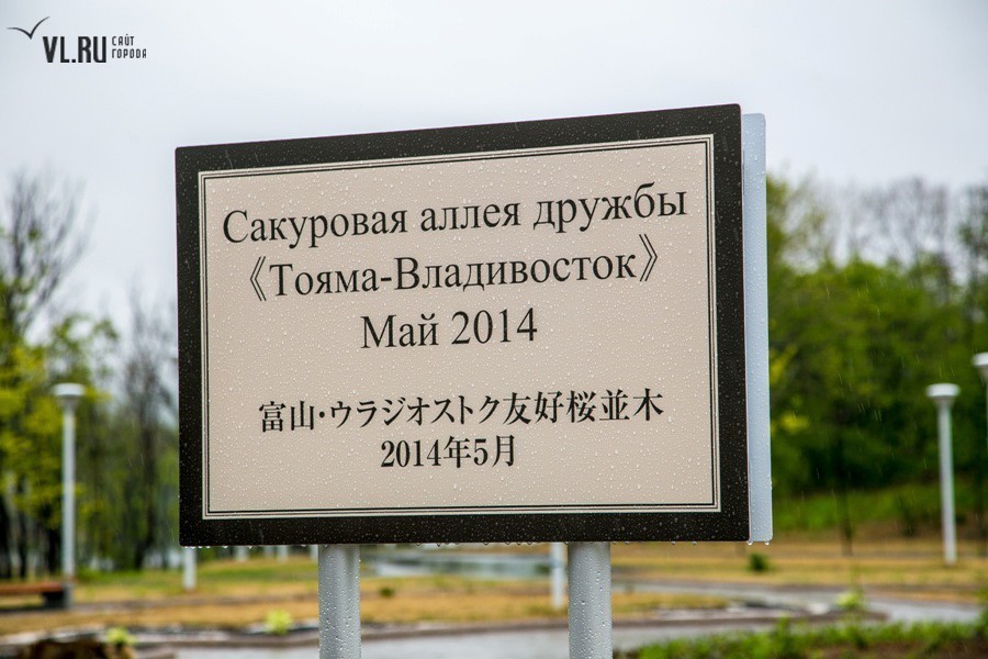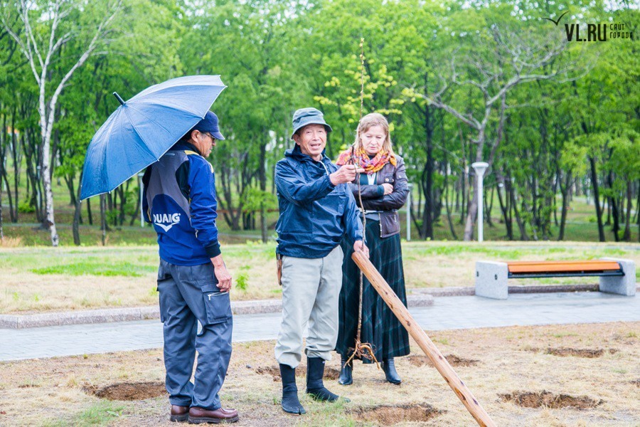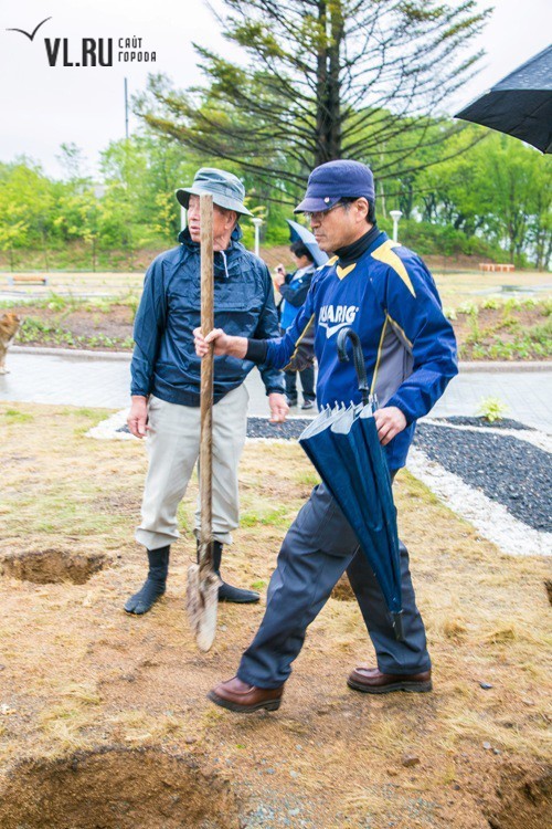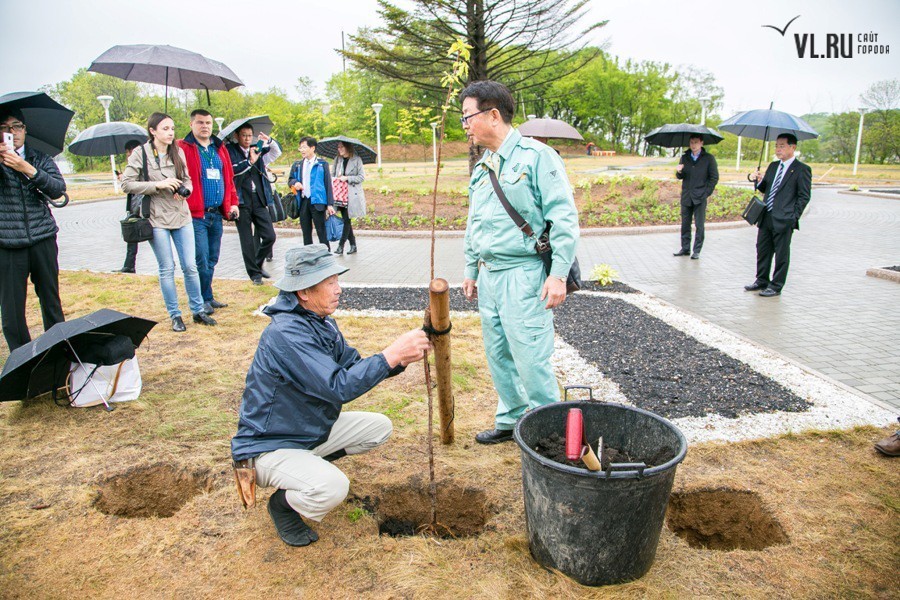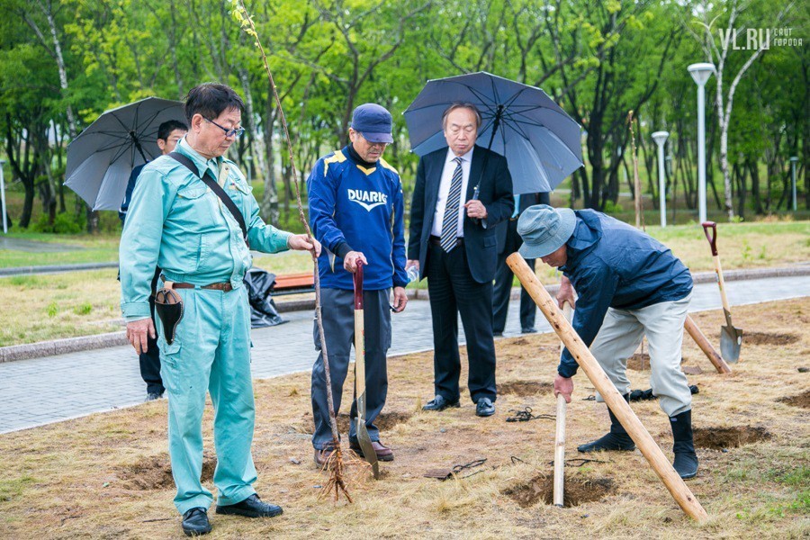 Погодные условия помешали выполнить идею в полной мере. Однако пять саженцев японской вишни нашли приют на российской земле. Под руководством специально откомандированных во Владивосток японских специалистов, членов Ассоциации садово-паркового и ландшафтного строительства префектуры Тояма, молодые деревца были посажены в заранее вырытые лунки и аккуратно подвязаны. Отбор сортов сакуры проводился специально: японские гости учли проблемный климат Владивостока и выбрали для нас морозоустойчивые породы.
