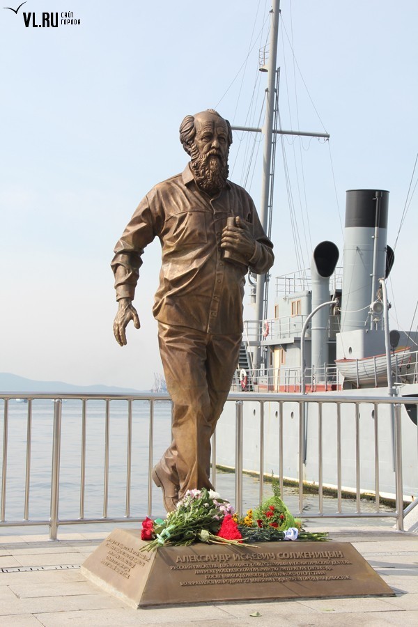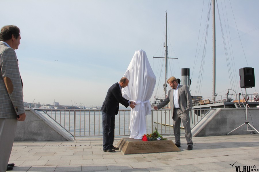 Утром в субботу, 5 сентября, на Корабельной набережной торжественно открыли памятник Александру Солженицыну. На церемонии собралось несколько десятков горожан, а также официальные лица. Специально для участия в мероприятии во Владивосток прибыл сын писателя Ермолай Солженицын.