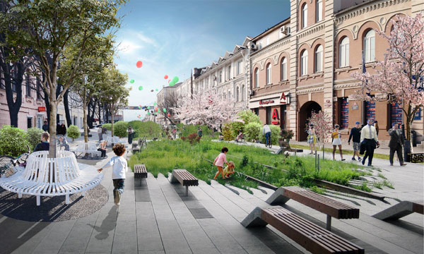Планируется, что одна из парковок появится на Адмирала Фокина, 23. Там разместится многоуровневая парковка, а рядом будет обустроенное общественное пространство. Уже есть примерный проект, подготовленный бюро SKAMEYKAarchitects.