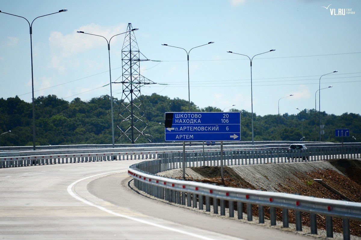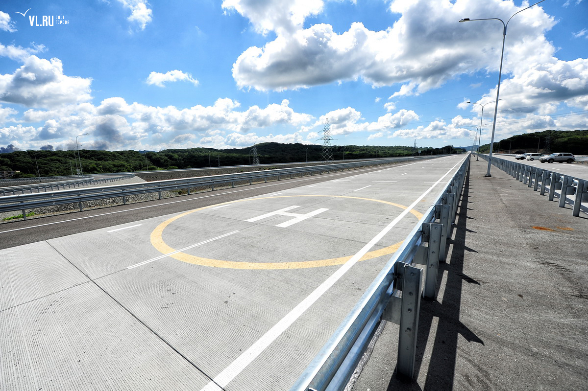 Четырехполосный участок протяженностью 13,5 километров в обход Артема выполнен из долговечного цементобетонного покрытия с допустимой нагрузкой 11,5 тонн на ось. Строители возвели на нем две развязки, четыре путепровода и четыре моста. А чтобы дорога была без больших перепадов высот и не подтоплялась сделали еще и 18-метровую насыпь. Прямо посреди полос красуется разметка для приземления вертолетов.