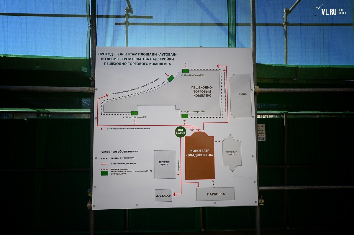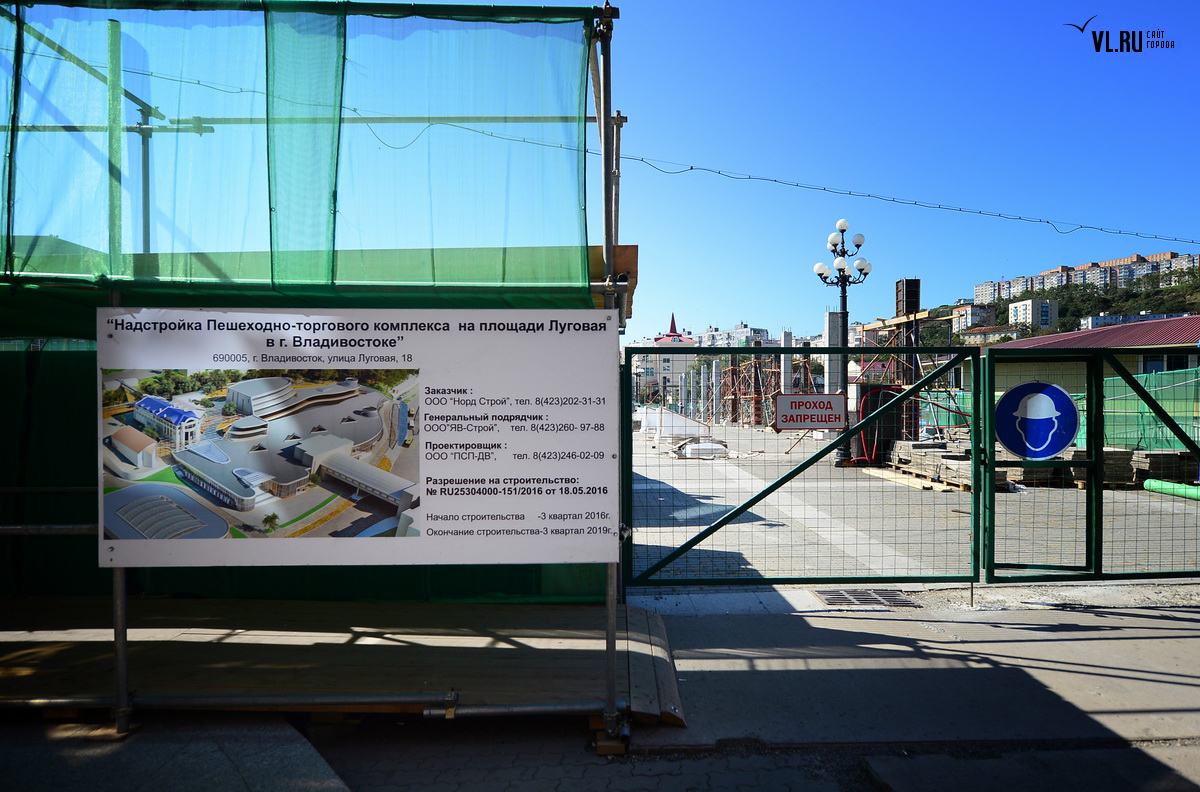 Во Владивостоке идет реконструкция площади Луговой. Пешеходно-торговый комплекс станет двухэтажным, в нем появятся лифты и эскалаторы. Надстройка пешеходно-торгового комплекса на Луговой рассчитана на три года. Разрешение на строительство владелец объекта компания ООО «Норд-Строй» получила четыре месяца назад, а завершение реконструкции запланировано на сентябрь 2019 года.