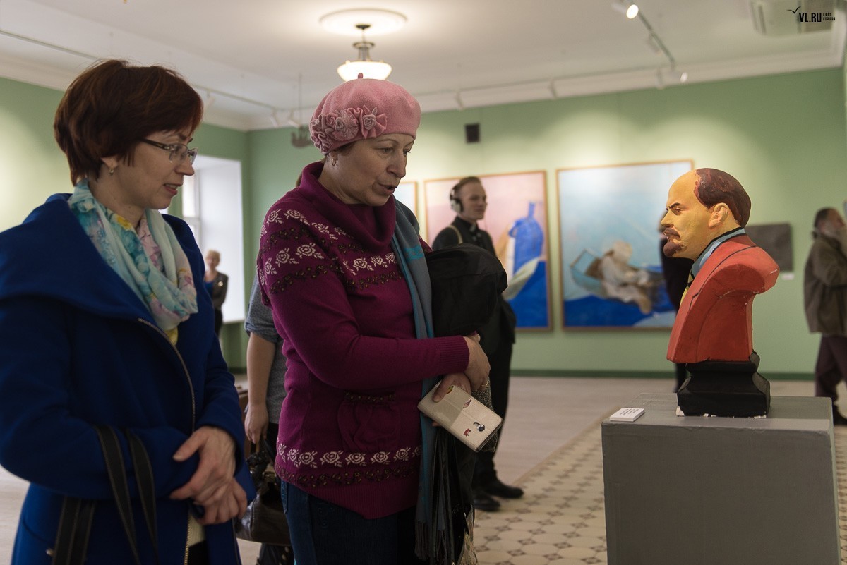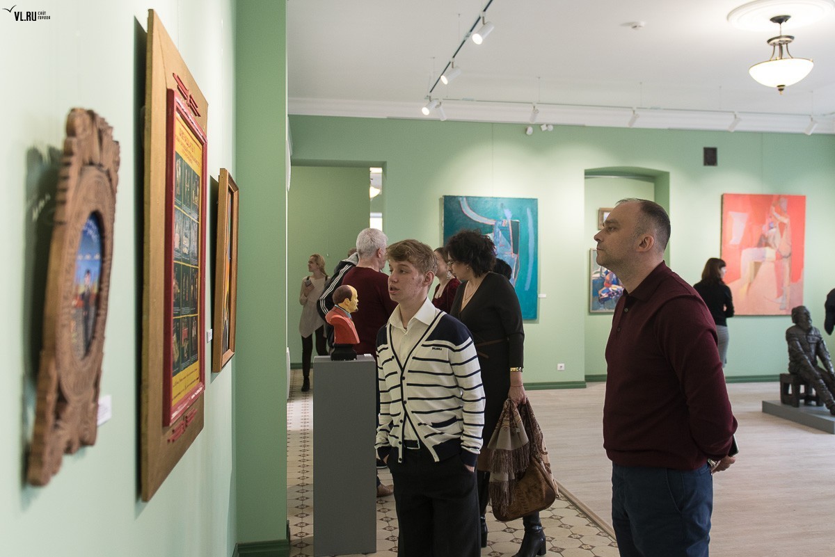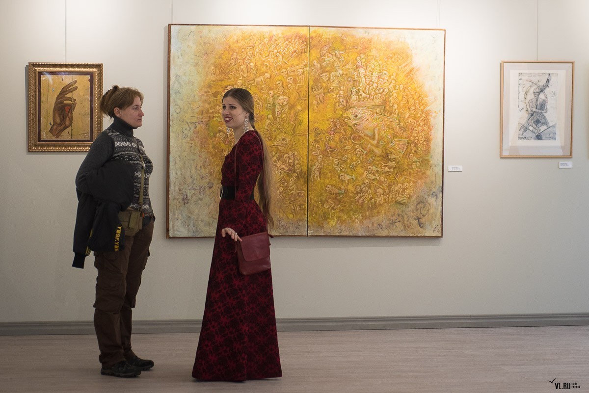 «Второй этаж станет залом временных экспозиций, – рассказывает, светясь от радости, Александр Городний, директор центра «Артэтаж». – И первой выставкой станет "Посмотри на Владивосток", она откроется в День города. Пока же здесь я разместил работы тех ребят, с которыми начинал, когда в конце 80-х делал в Москве первую выставку "Владивосток", показывая работы в том числе членов групп "Владивосток", "Штиль"… Это работы Андрея Камалова, Виктора Шлихта, Владимира Погребняка, Джона Кудрявцева, скульптуры Надии Шаймордановой.