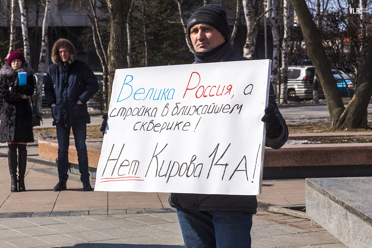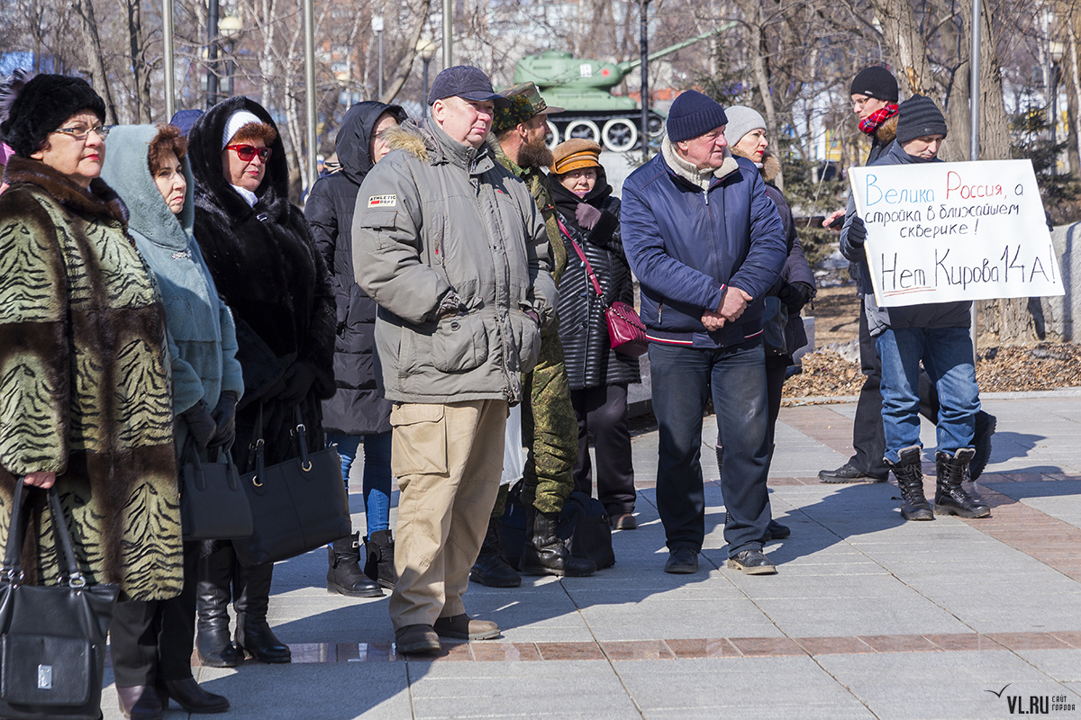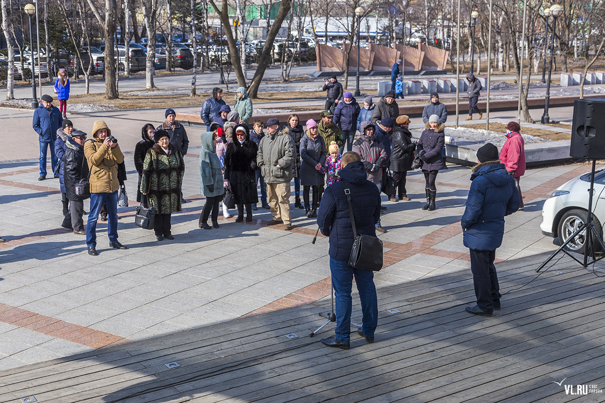 На митинг 24 февраля заявлялось около двух тысяч человек, но пришло чуть меньше ста. Организаторы митинга объяснили это тем, что активисты работают за городом – собирают подписи за отмену генплана, организацию экологической дружины и закрытие спецзавода на территории Владивостока. Общественник Сергей Мильвит сообщил, что все эти вопросы находятся на контроле, а исполнения будут требовать у городских и краевых властей. Впрочем, если понадобится, дойдут и до федеральных. А вопросов оказалось очень много.