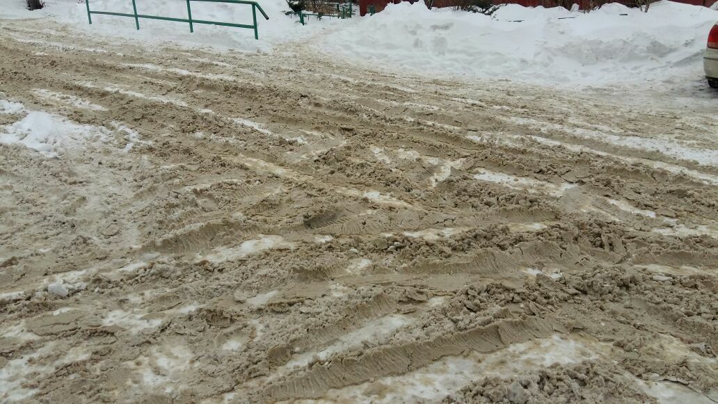 | УК «Стандарт» | На Гульбиновича, 30 почищены только входы в подъезды. | Дороги и тротуары вокруг дома уже утоптали 20-сантиметровым слоем пешеходы и машины. |