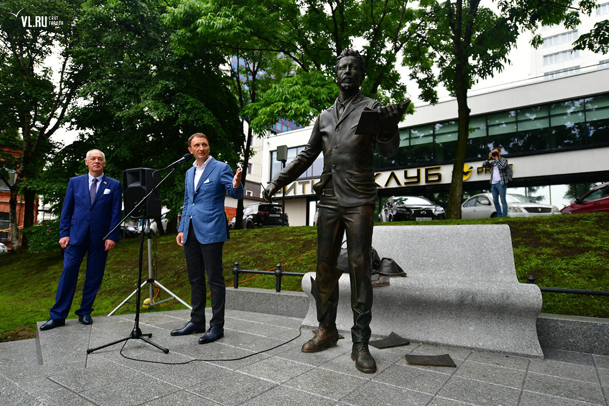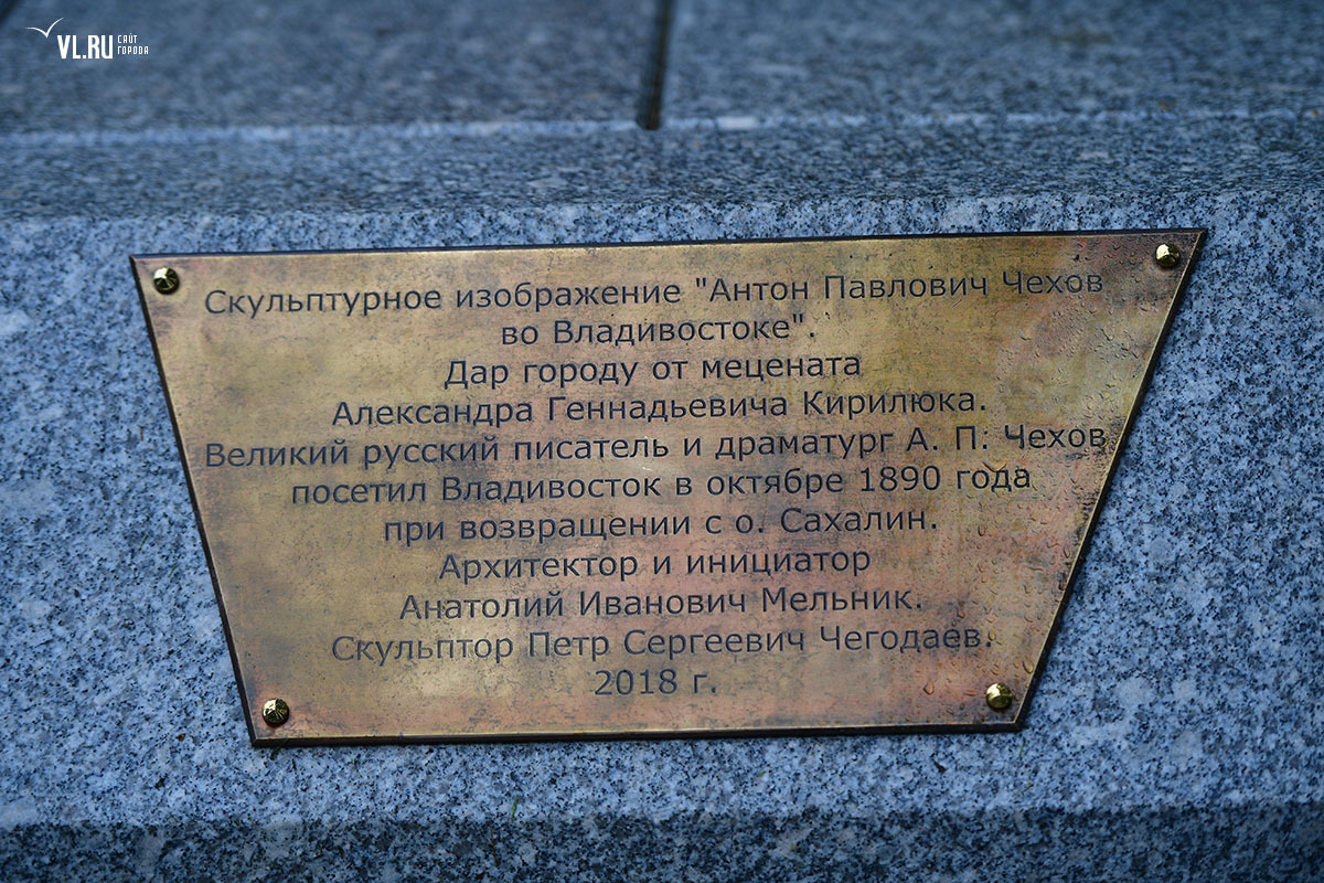 «Мы с большим уважением относимся к творчеству Антона Павловича, и так случилось, что он успел побывать в нашем городе, а также написал несколько важных строк для Владивостока. Где-то, конечно, он указывал на негативные стороны жизни города той эпохи, но в то же время, находясь здесь на берегу, описывал и роскошные впечатления <...> Хочу принести слова благодарности людям, которые работали над тем, чтобы сегодняшнее событие состоялось», – с такими словами выступил глава Владивостока Виталий Веркеенко, отметив старания мецената Александра Кирилюка, архитектора Анатолия Мельника и автора эскиза, скульптора Петра Чегодаева.