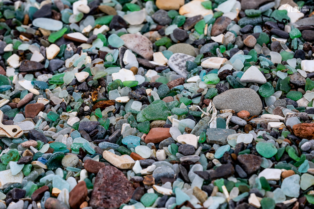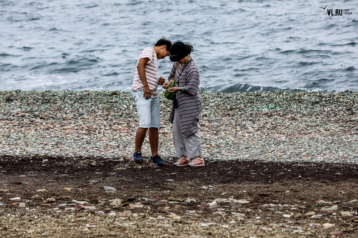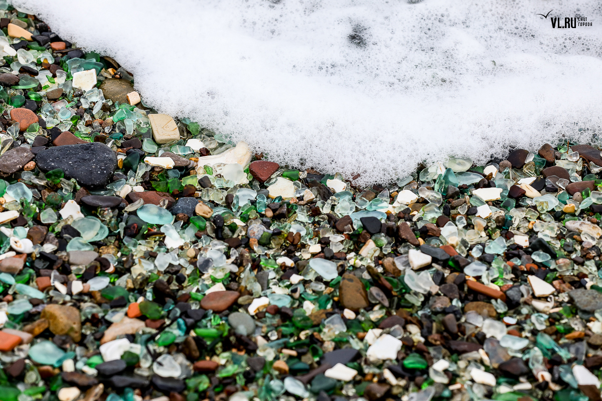 «50 лет назад я прошелся по этой бухте и впервые увидел на берегу отшлифованное стекло, – рассказывает Петр Бровко. – Перед саммитом АТЭС была закрыта свалка на Горностае, которая являлась источником стекла, и оно естественным путем исчезнет через 25 лет. Море его вымоет и перемелет в песок. Но в связи с тем, что китайцы возят его пакетами, на это уйдет гораздо меньше времени. Возможно, это произойдет лет через пять-семь».