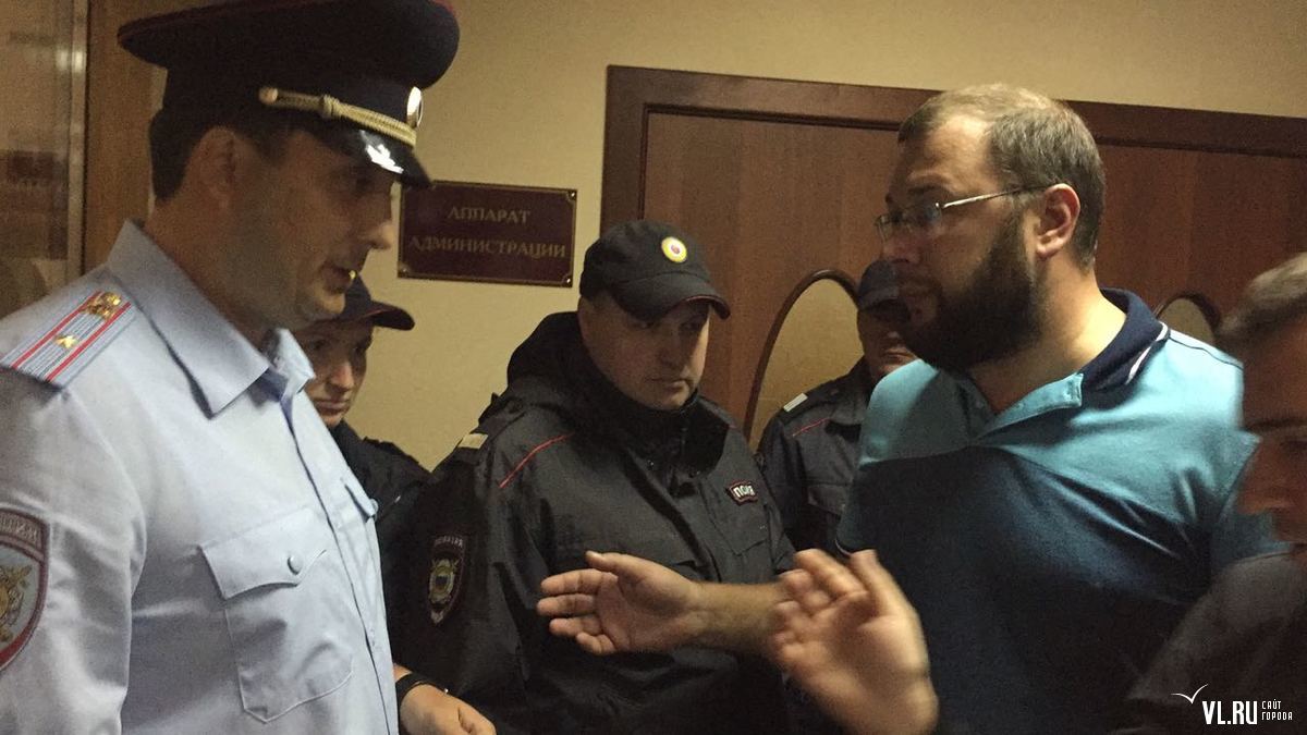 10:10: Сотрудники полиции (6 человек) не пускают на третий этаж, где находятся члены УИК, Александра Колосокова, помощника депутата Госдумы и представителя Ищенко, депутата Думы Владивостока Надежду Телелюеву. Два раза в здании администрации завязывалась драка.